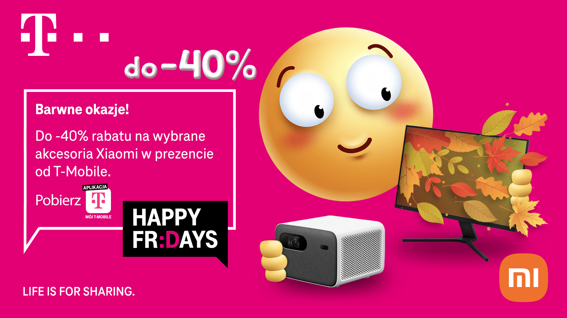 Odbierz od T-Mobile do 40% rabatu na wybrane akcesoria Xiaomi. Czy można mieć idealnie posprzątane mieszkanie? Czy można utrzymać świetną wagę? Czy można mieć w domu prywatne kino? Oczywiście, że można – tym bardziej, że w ramach akcji „Happy Fridays” gadżety Xiaomi będą tańsze nawet o 40%. Klienci indywidualni T-Mobile mogą skorzystać z prezentu w dniach 15-19 października poprzez aplikację lub SMS. Zbyt krótki kabel odkurzacza, zanieczyszczone od smogu powietrze, gdy chcemy otworzyć okna w domu, czy za cichy głośnik to drobiazgi, które potrafią uprzykrzyć codzienność. Rozmaite gadżety mogą rozwiązać jednak każdy z tych problemów, a także dostarczyć nowych, ciekawych zastosowań. W tym tygodniu, w T-Mobile w ramach akcji „Happy Fridays”, proponujemy naszym klientom kod zniżkowy na wybrane akcesoria Xiaomi, dzięki któremu będą oni mogli zakupić potrzebne urządzenie nawet o 40% taniej.
