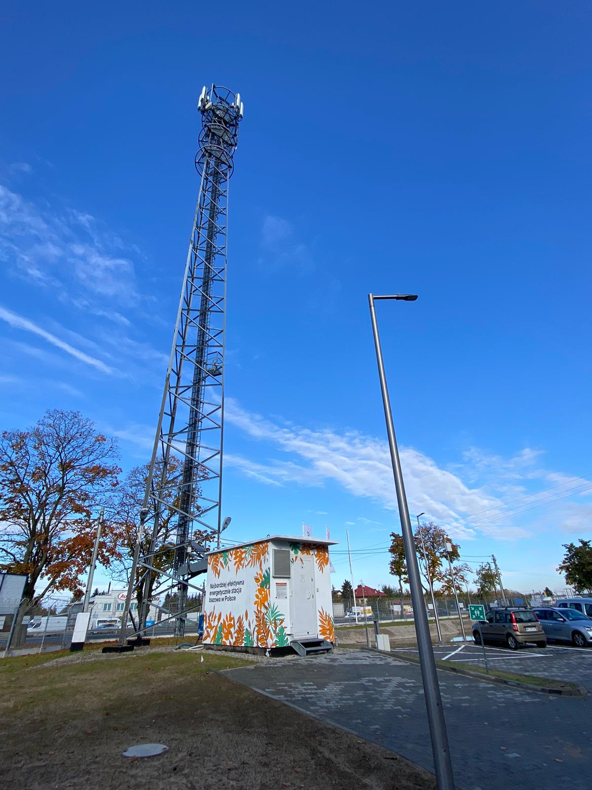 Stacja bazowa w Łazach stoi na terenie Warsaw Data Hub. Pisaliśmy o nim tutaj, ale przy okazji przypomnę, że to jeden z najnowocześniejszych tego typu obiektów w Polsce. Nie bez znaczenia jest fakt, że powstał w Łazach, w aglomeracji warszawskiej, w pobliżu najważniejszego w Polsce centrum biznesowo-logistycznego. Po przeniesieniu najważniejszych systemów stanie się jednym z kluczowych węzłów naszej sieci i pozwoli zaoferować klientom biznesowym nowoczesne, bezpieczne i ekologiczne zaplecze w postaci usług data center oraz kolokacji. Rozwiązania zastosowane w WDH pozwalają na redukcję liczby wykorzystywanych urządzeń, co w połączeniu z ich najwyższą efektywnością energetyczną daje wyższą efektywność naszej sieci. Do rozwiązań poprawiających możemy dodać m.in. farmę fotowoltaiczną, która niedługo tam powstanie, stacje ładowania samochodów elektrycznych, zastosowanie „szarej wody” do podlewania terenu, a nawet specjalna kostka brukowa pochłaniająca zanieczyszczenia. W praktyce oznacza to redukcję poziomu emisji CO2 o około 5 tys. ton rocznie.