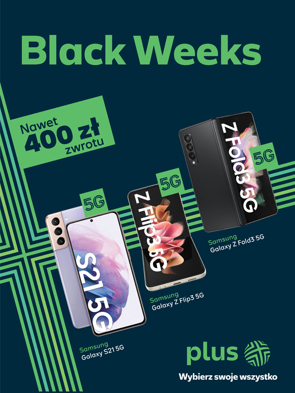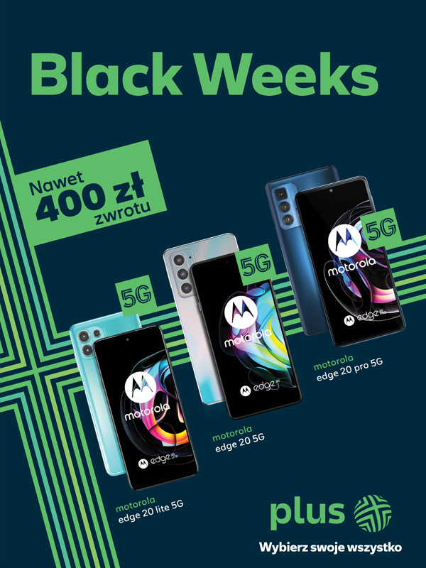 Black Weeks w Plusie – jeszcze więcej smartfonów ze zwrotem gotówki. Z okazji Black Weeks oferta smartfonów w Plusie objętych zwrotem gotówki będzie jeszcze bogatsza. Od dzisiaj operator zaproponuje zwrot nawet 400 zł za wybrane modele Motoroli oraz Samsunga.
