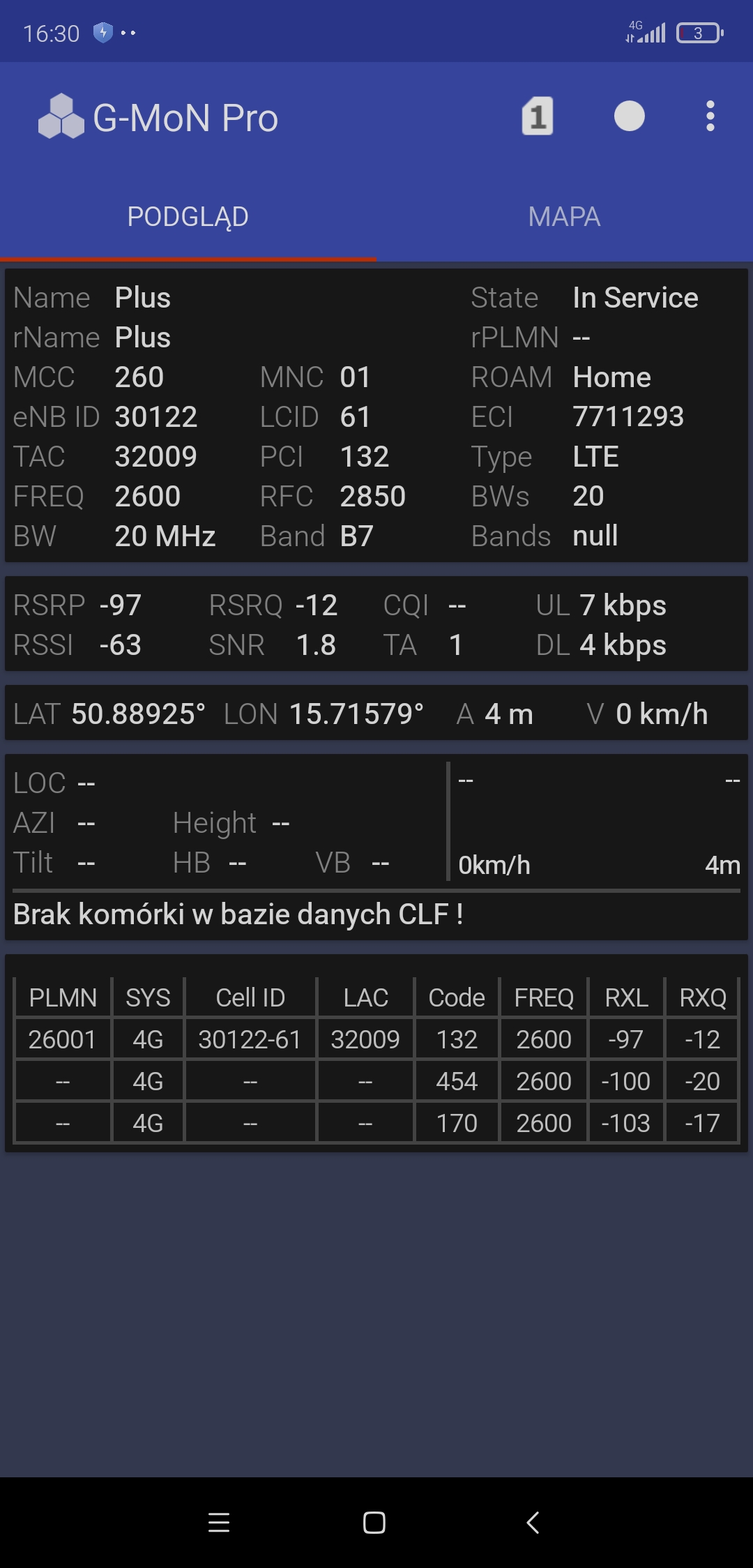 W ostatni weekend Plus rozszerzył jeleniogórską stację BT-30122, pracującą na wieży Orange o kolejny, czwarty sektor oraz dołożył do stacji LTE2600. Dziś nowe pasmo pracowało w trybie testowym.