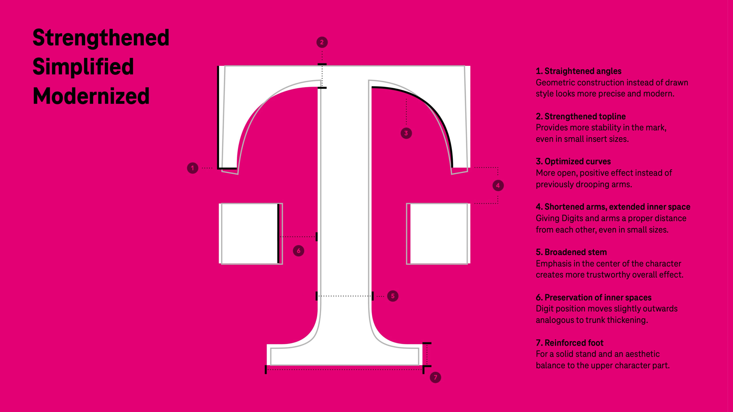 Aby podkreślić podejście skupione na jednej marce, Deutsche Telekom wprowadza nowe logo Grupy, koncentrując silniej uwagę wokół samego „T”. Ponadto w ramach nowej architektury mocniej podkreślona i bardziej przejrzysta będzie rola magenty. Skojarzona z kolorem nazwa marki w przyszłości ustrukturyzuje portfolio produktów we wszystkich krajach. Podejście do globalnego rynku przyjęte przez Grupę Deutsche Telekom stanowi kluczowy filar naszej międzynarodowej, cyfrowej i zrównoważonej strategii korporacyjnej – powiedział Ulrich Klenke, Chief Brand Officer w Deutsche Telekom. Wszystko się tutaj łączy – jeden cel, jedna architektura marki, jedno logo, jedno hasło i jeden projekt brandu. Dzięki naszej globalnej strategii marki chcemy sprawić, aby nasz rozwój w kierunku lidera telekomunikacji cyfrowej był widoczny dla wszystkich.