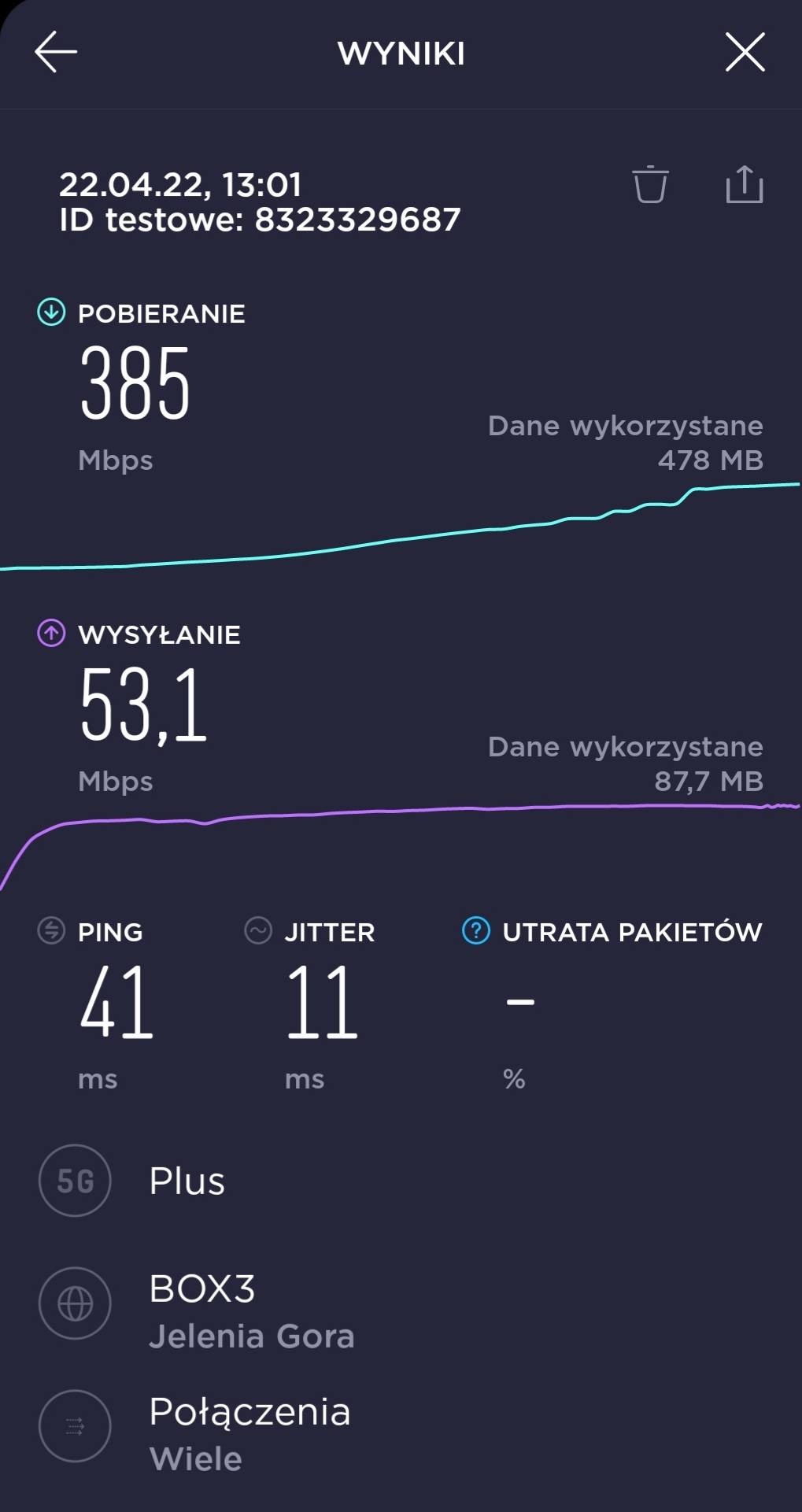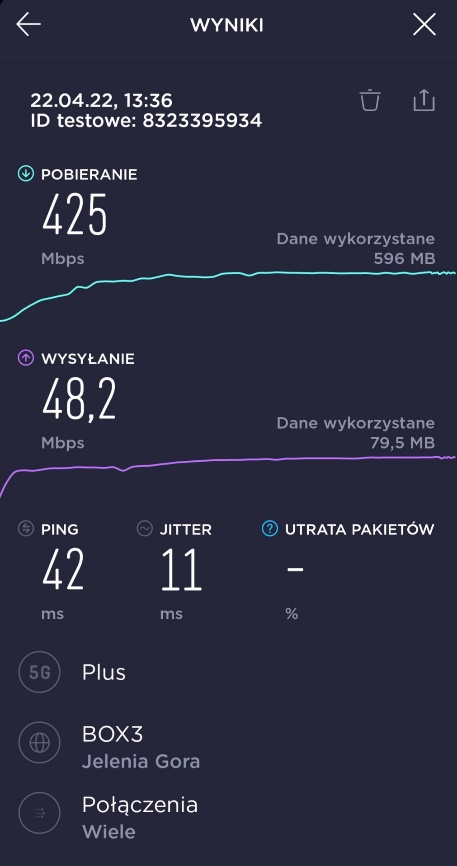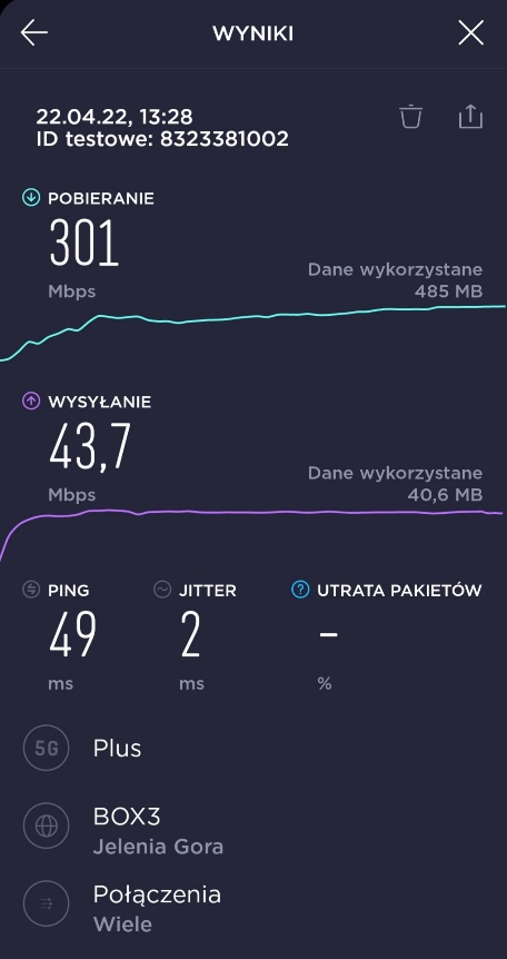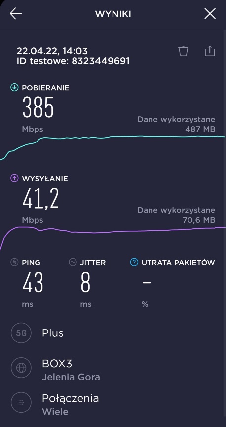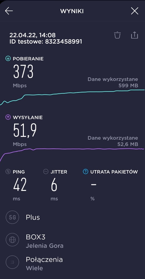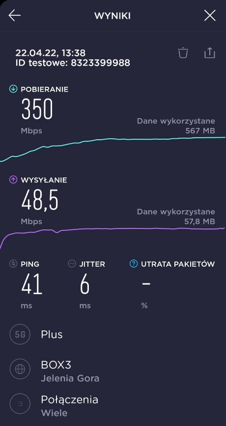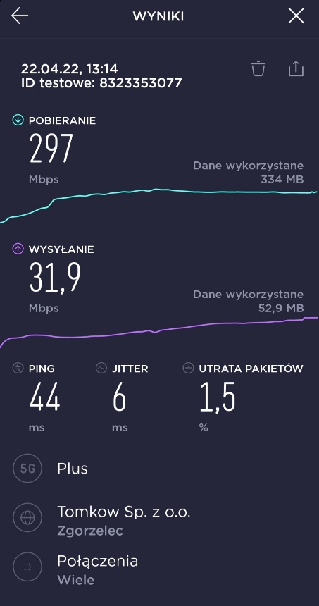Dzięki uprzejmości naszego Czytelnika, prezentujemy materiał, związany z pomiarami prędkości transmisji danych w segmencie 5G u tego właśnie operatora. Za materiał bardzo dziękujemy.