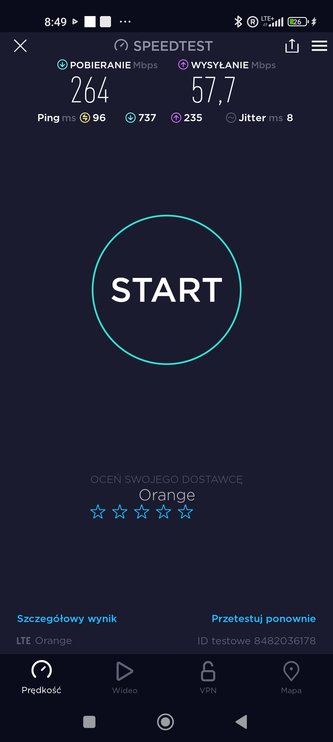 Harrachov graniczy z Polską od strony przejścia granicznego Jakuszyce. Po polskiej stronie mamy m.in. „popis” sieci Plus w postaci stacji dwusektorowej GUL. A co zastajemy w Harrachovie? Nasz terminal, w bezpośrednim sąsiedztwie centrum turystycznego tego pięknego miasteczka i skoczni narciarskich, oczekujących na generalny remont (w tym znanej na całym świeci skoczni mamuciej) zalogował się w trybie automatycznym do sieci T-Mobile. W Czechach usługi świadczą ponadto: O2.cz oraz Vodafone.cz. Stacja operatora pracuje na szczycie skoczni narciarskiej. Wyniki transmisji danych LTE, które uzyskaliśmy w roamingu międzynarodowym na szerokości pasma 30MHz (LTE800/LTE1800) prezentowały się jak niżej: