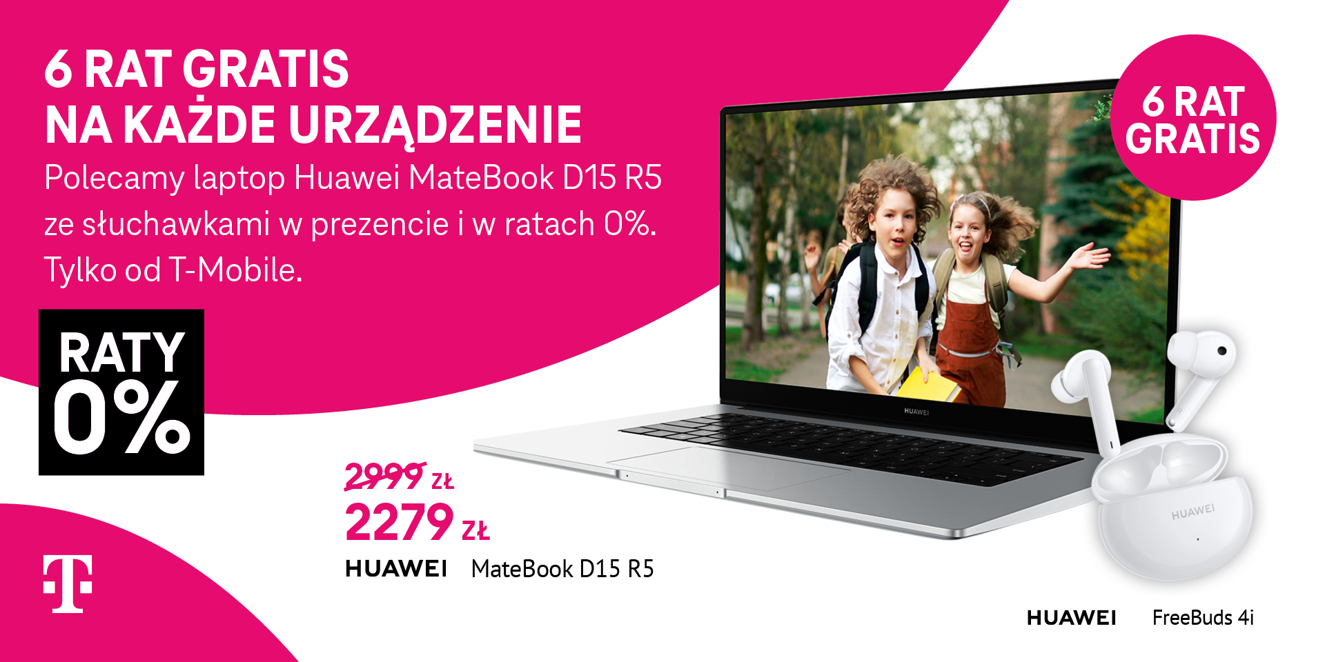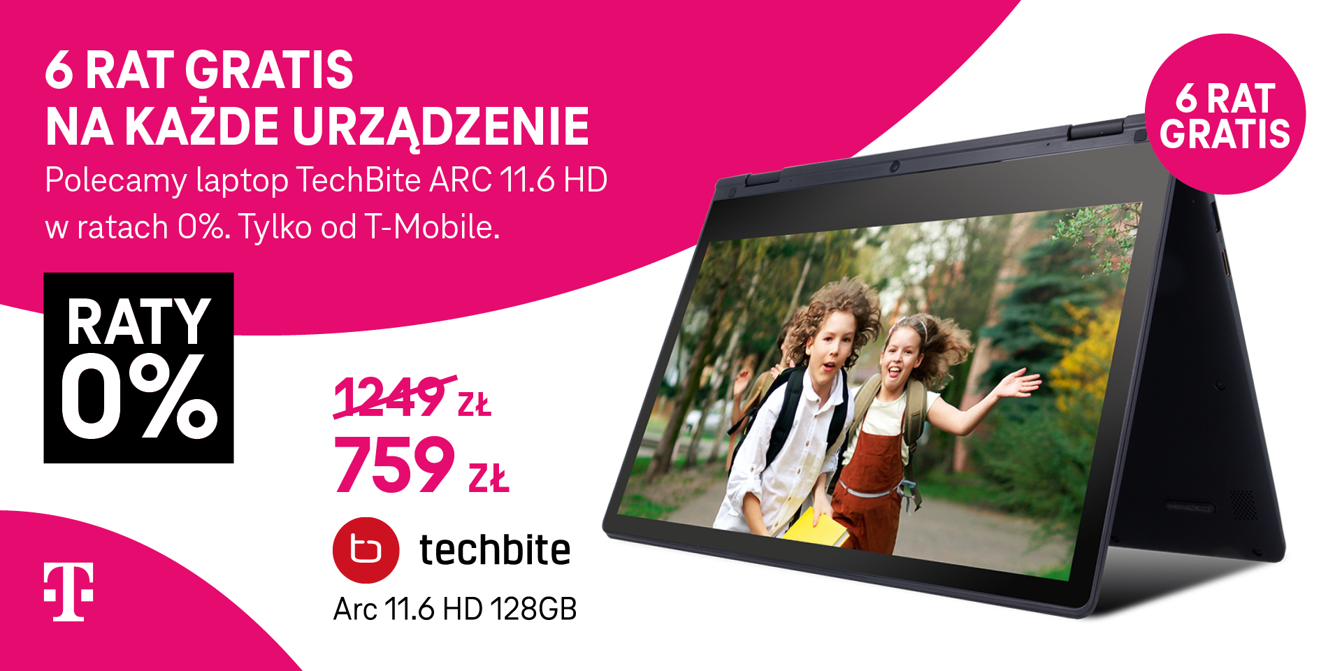 Rusza wielka promocja w T-Mobile: 6 rat gratis na KAŻDE urządzenie. Zakupy elektroniki dla wielu osób oznaczają polowanie na okazje zakupowe. Te dotyczą zazwyczaj wybranych modeli, przez co trudniej jest dobrać idealny sprzęt dla siebie lub swoich bliskich. A gdyby tak móc wybierać spośród wszystkich urządzeń – laptopów, smartfonów, smartwatchów, tabletów – dostępnych w sklepie i to w niższej cenie? 16 sierpnia rusza wielka promocja w T-Mobile, dzięki której każdy może kupić to, czego dokładnie potrzebuje, a za 6 pierwszych rat nie płacić. Równolegle startuje kampania promująca laptopy, które w ramach akcji można kupić w korzystnych cenach. Rok szkolny zbliża się wielkimi krokami. W nauce coraz częściej uczniów wspiera technologia, dlatego to właśnie teraz przygotowaliśmy ogromną promocję na urządzenia w T-Mobile. Skorzystają z niej jednak nie tylko młodzi użytkownicy – każdy znajdzie coś dla siebie spośród setek urządzeń dostępnych w T-Mobile. Oferta umożliwia bowiem zakup dowolnego sprzętu w ratach 0%, w umowie na 24 miesiące, z 6 ratami gratis. Kupujący ponosi więc jedynie koszt opłaty na start oraz kupionego abonamentu, same raty za urządzenie zacznie zaś opłacać dopiero w 7. miesiącu. Takiej promocji jeszcze nie było!
