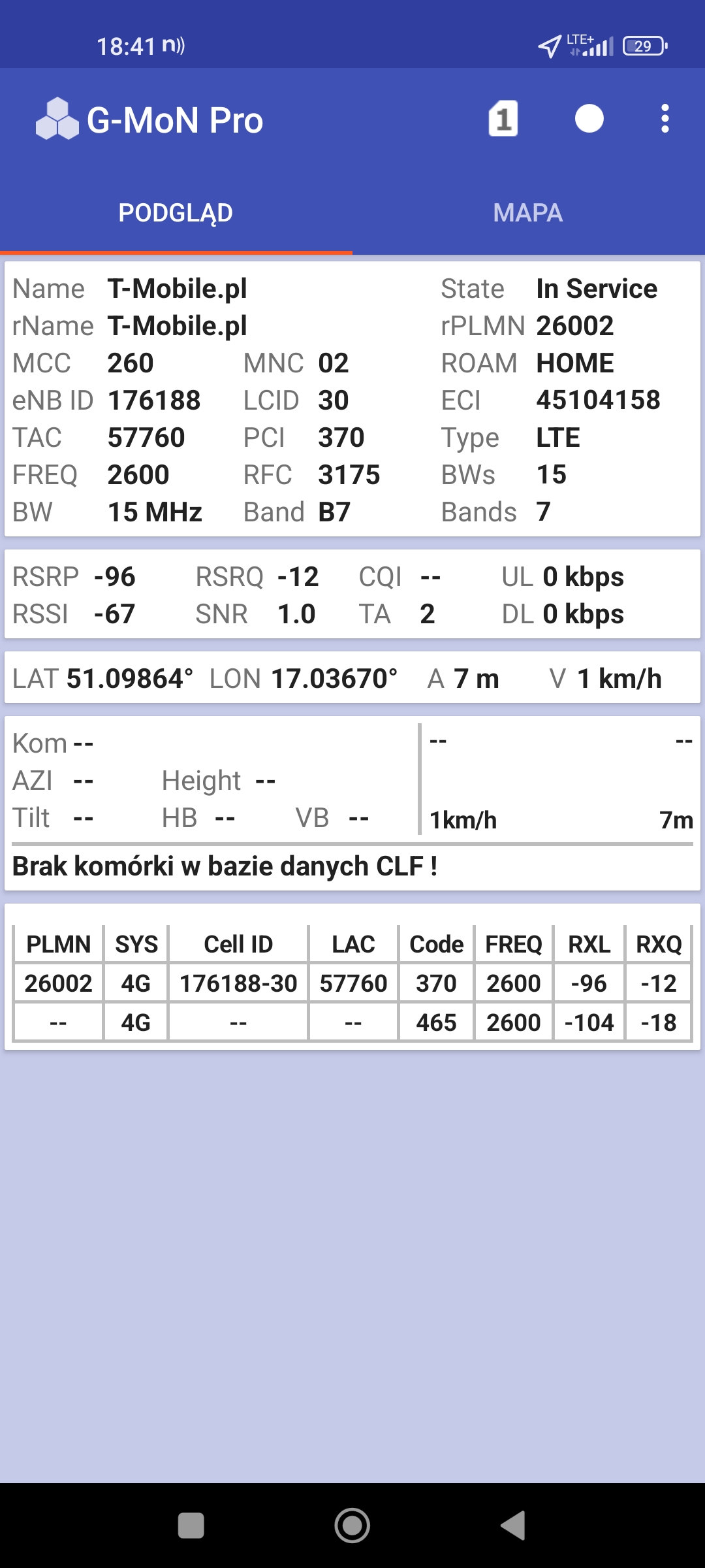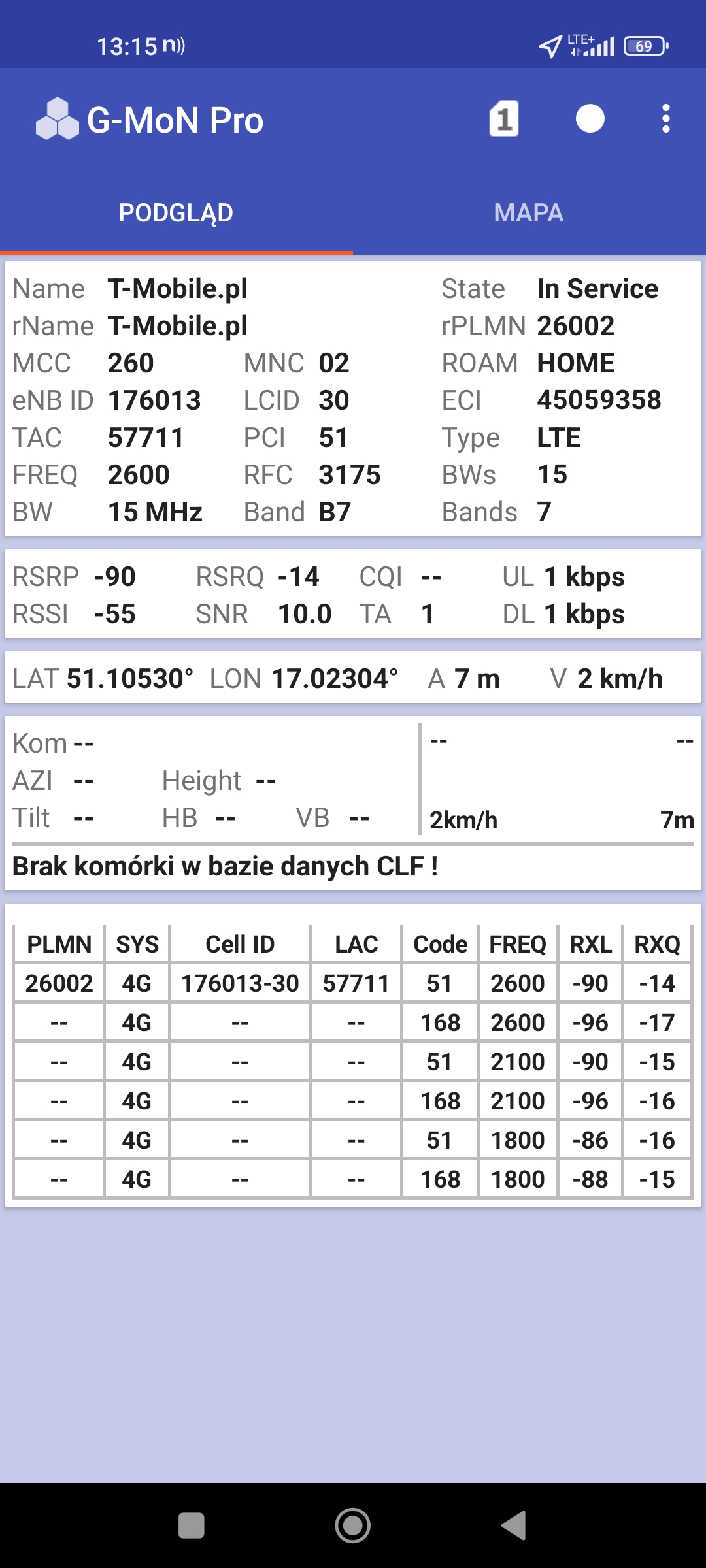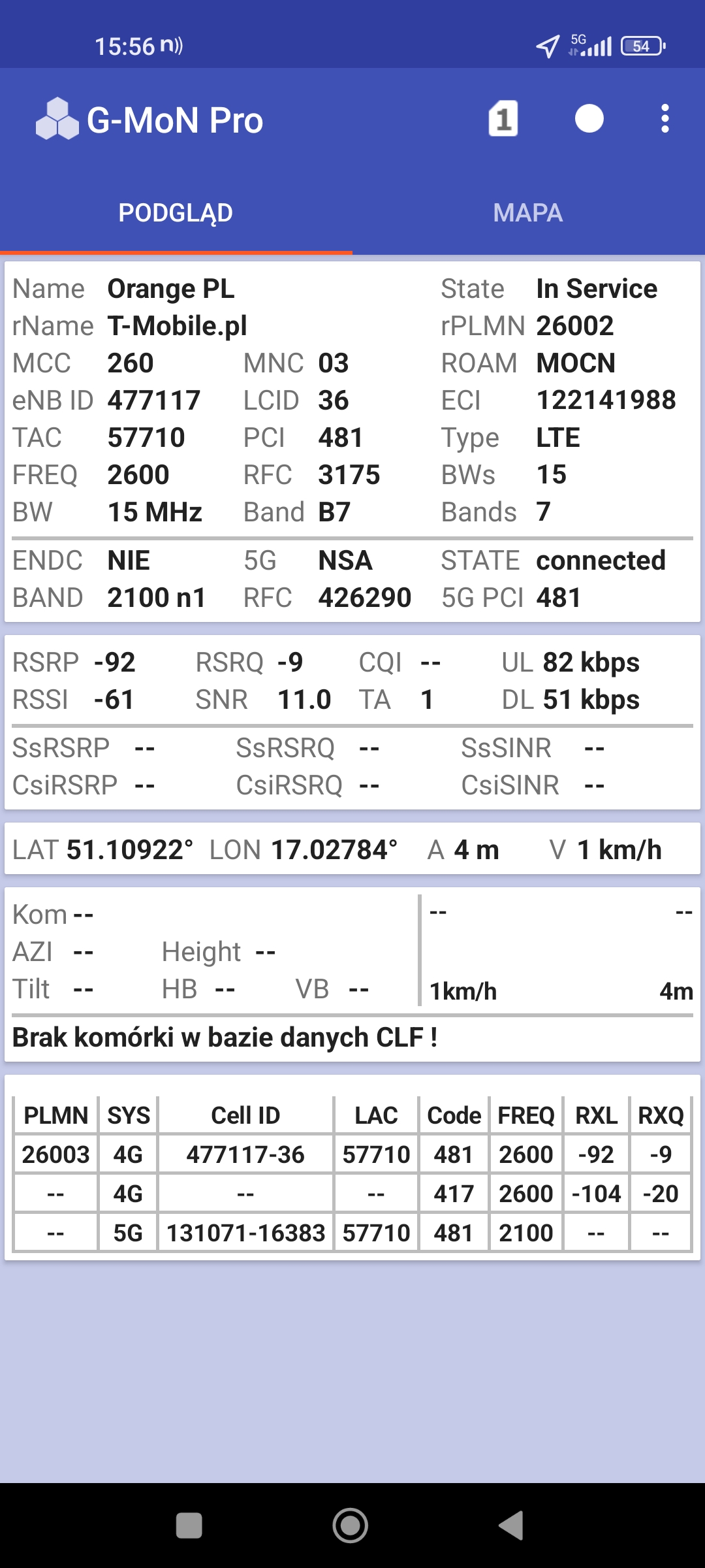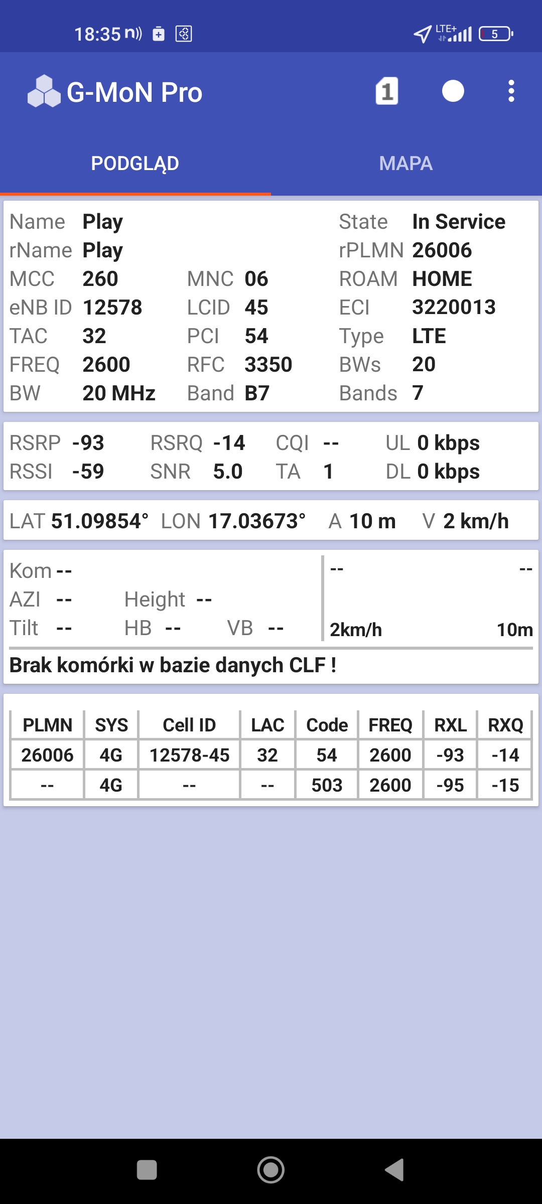 Jak widać na zaprezentowanych zrzutach ekranów, statystycznie najlepiej sprawowały się sieci operatorów globalnych. Przyjmując nawet mniejszą dostępność segmentu 5G, aniżeli u Plusa czy w Play – nie ma to znaczenia dla świadczonych dla klienta usług, ponieważ w momencie, kiedy operatorzy gwarantują zasięg LTE – gwarantują w zdecydowanej większości pożądaną jakość usług, konkurencyjną do segmentu 5G Plusa, który dla 5G posiada dedykowaną część pasma. Kuriozalną sytuację na dworcu Wrocław Główny wciąż posiada Plus. Operator dysponuje w stolicy Dolnego Śląska również stacjami, pracującymi z jednym pasmem LTE. Przeważnie jest to LTE1800. Jak wspominaliśmy na wstępie bieżącej informacji – prędkości, które dziś proponuje przy transmisji danych Play są niewspółmiernie niskie wobec tych, które były jeszcze kilka miesięcy temu. Ponieważ większość stacji jest wyposażona w komplet pasm, a stacji bazowych we Wrocławiu jest bardzo dużo – w tym miejscu kolejny raz można wrócić do piętrzących się od lat zaniedbań w jakości zarządzania siecią i w jej parametryzacji.