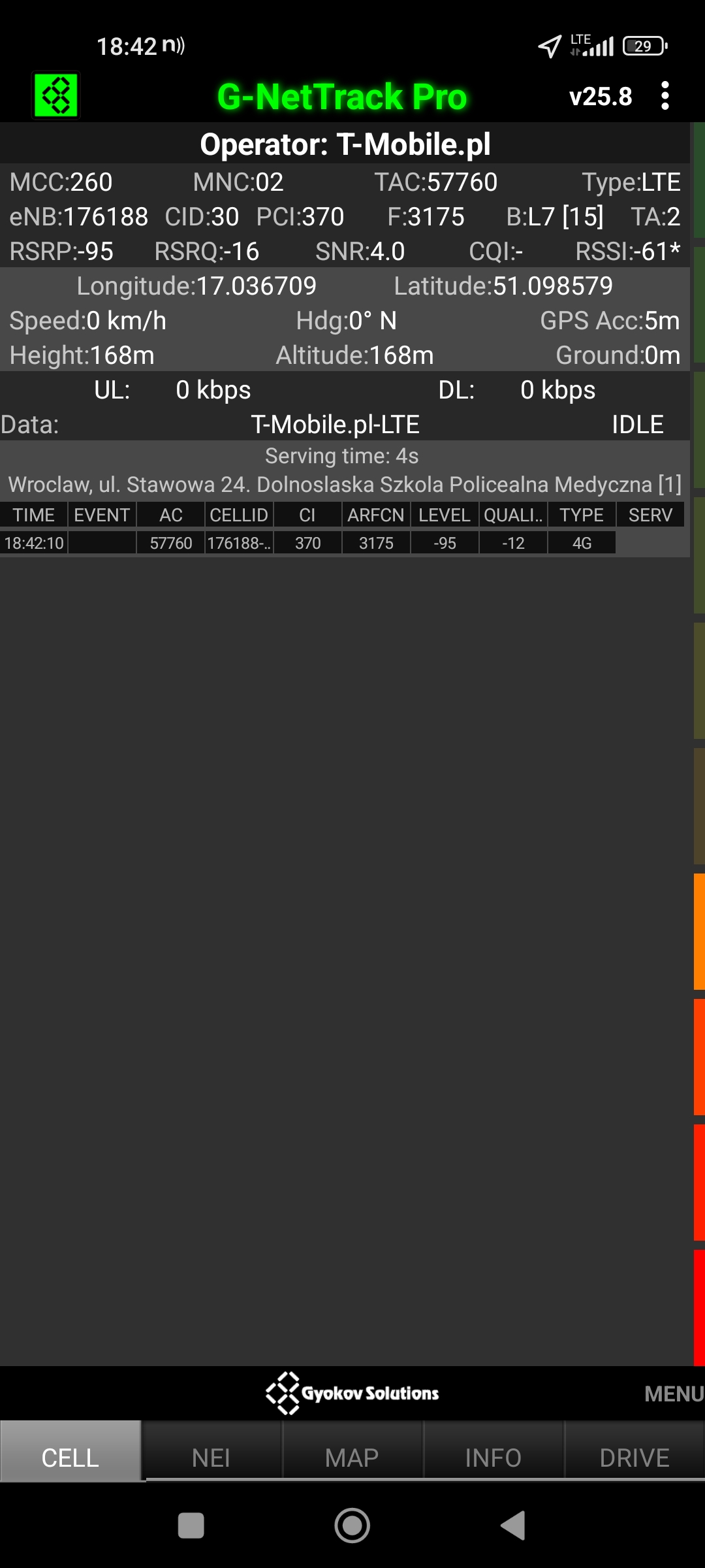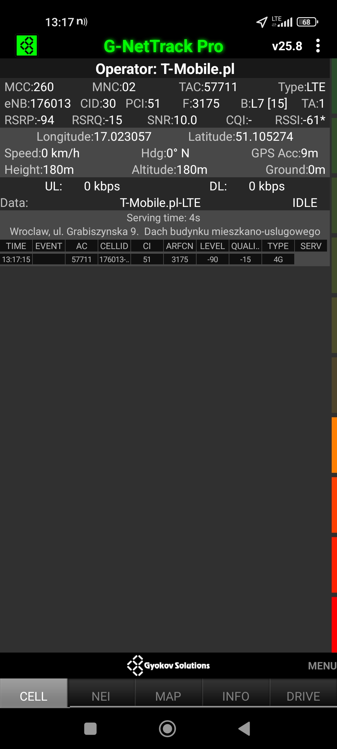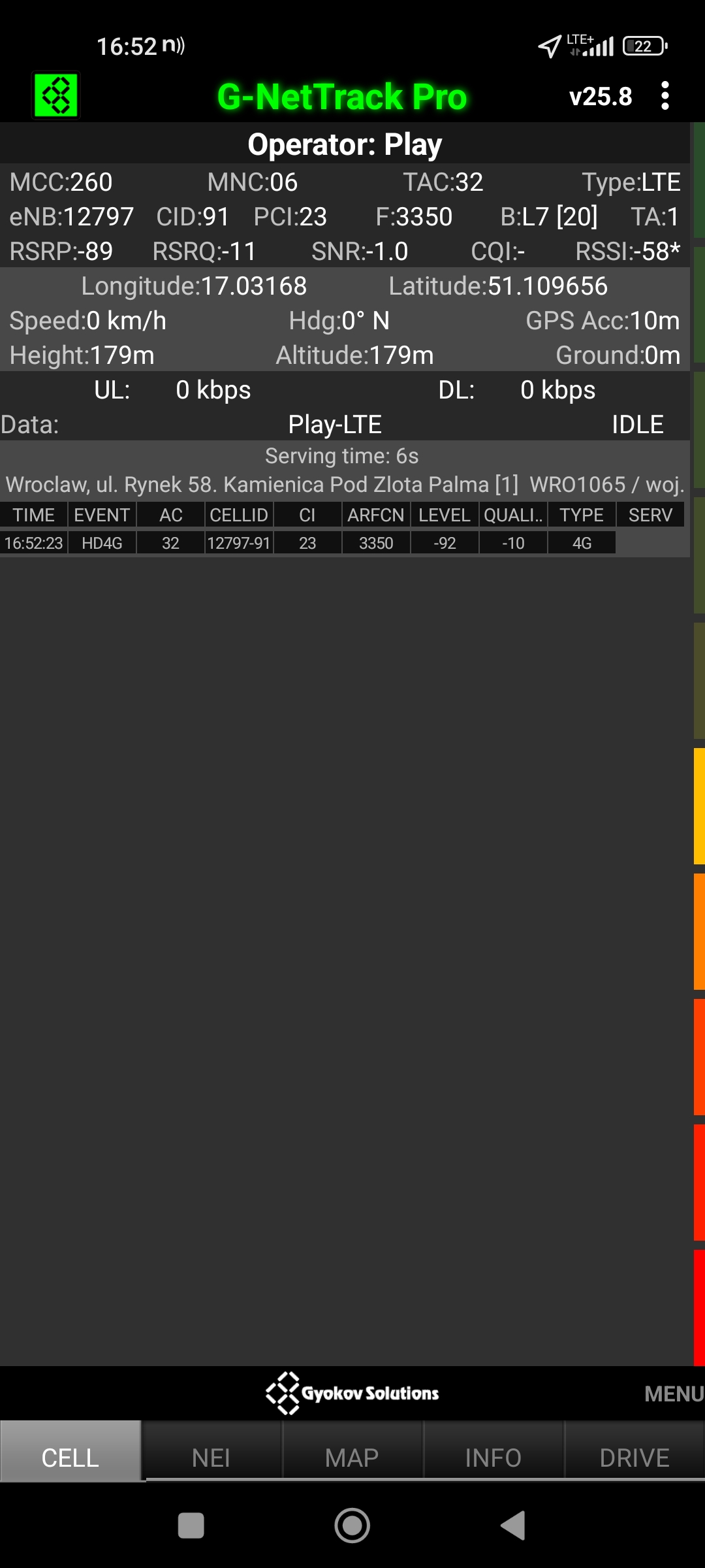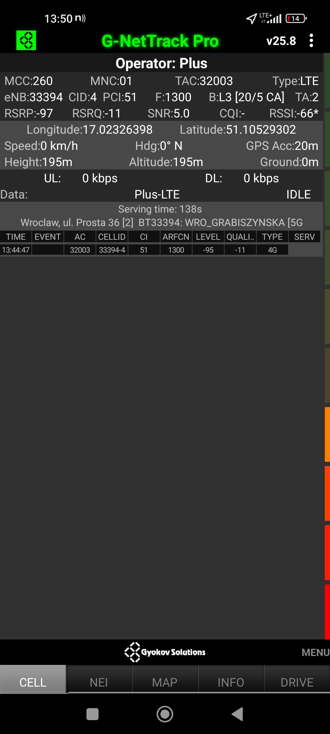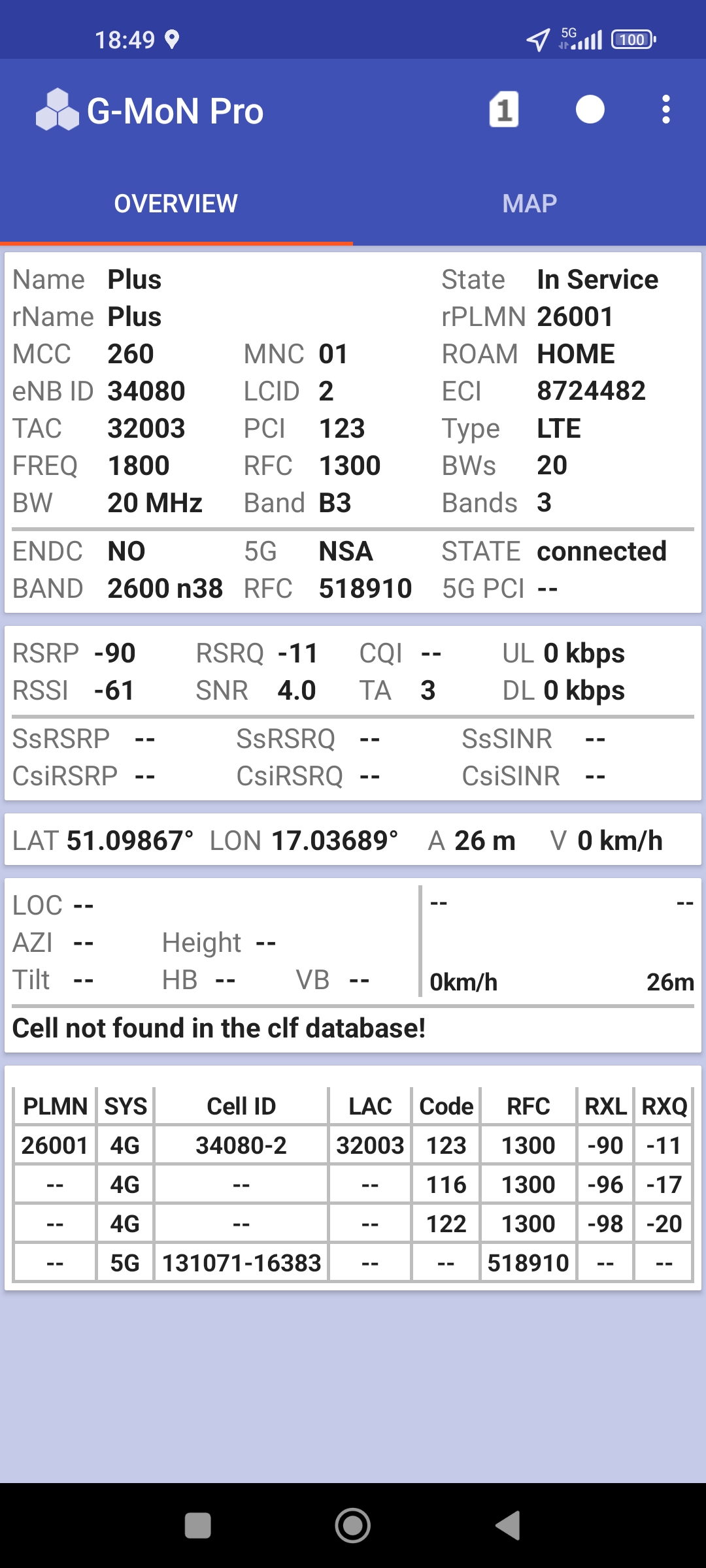 Jak widać na zaprezentowanych zrzutach ekranów, statystycznie najlepiej sprawowały się sieci operatorów globalnych. Przyjmując nawet mniejszą dostępność segmentu 5G, aniżeli u Plusa czy w Play – nie ma to znaczenia dla świadczonych dla klienta usług, ponieważ w momencie, kiedy operatorzy gwarantują zasięg LTE – gwarantują w zdecydowanej większości pożądaną jakość usług, konkurencyjną do segmentu 5G Plusa, który dla 5G posiada dedykowaną część pasma. Kuriozalną sytuację na dworcu Wrocław Główny wciąż posiada Plus. Operator dysponuje w stolicy Dolnego Śląska również stacjami, pracującymi z jednym pasmem LTE. Przeważnie jest to LTE1800. Jak wspominaliśmy na wstępie bieżącej informacji – prędkości, które dziś proponuje przy transmisji danych Play są niewspółmiernie niskie wobec tych, które były jeszcze kilka miesięcy temu. Ponieważ większość stacji jest wyposażona w komplet pasm, a stacji bazowych we Wrocławiu jest bardzo dużo – w tym miejscu kolejny raz można wrócić do piętrzących się od lat zaniedbań w jakości zarządzania siecią i w jej parametryzacji.