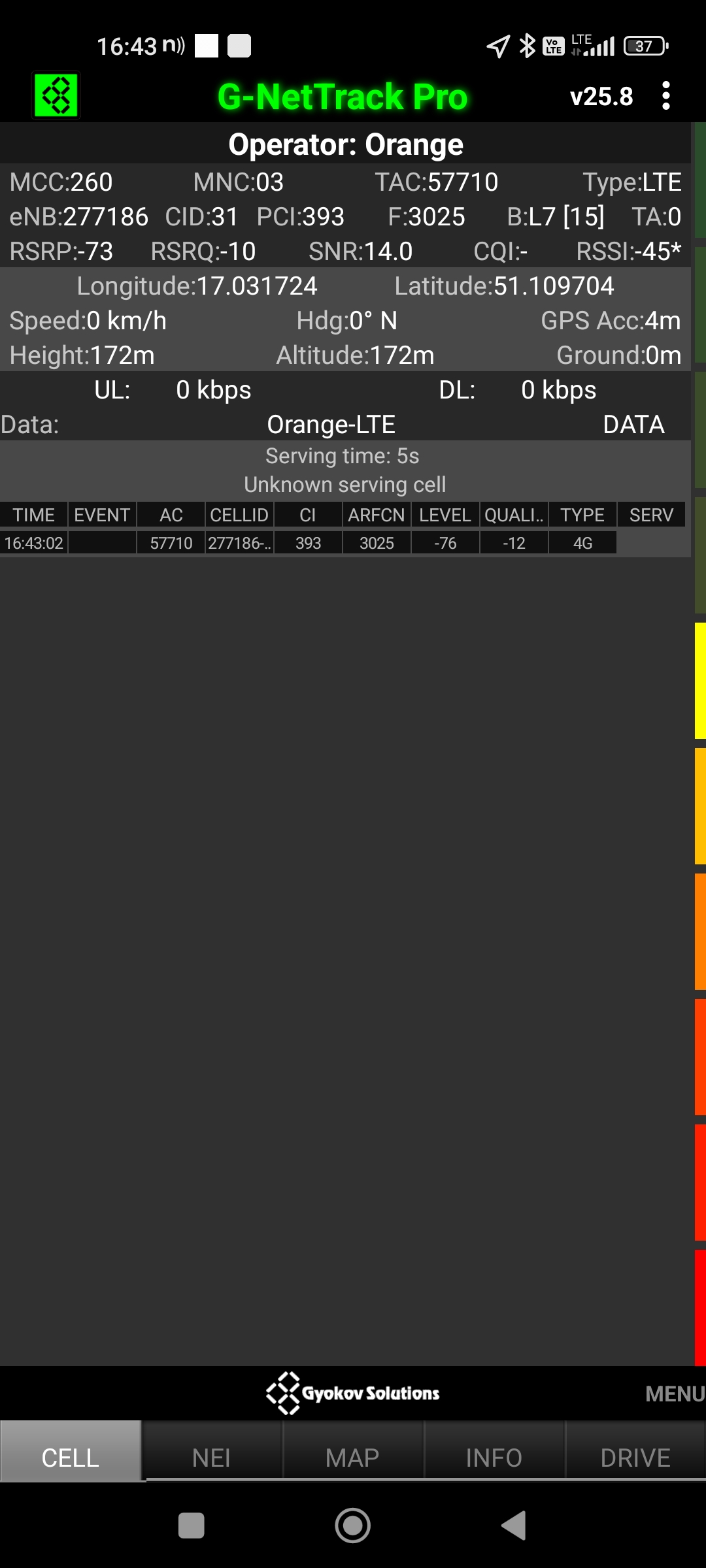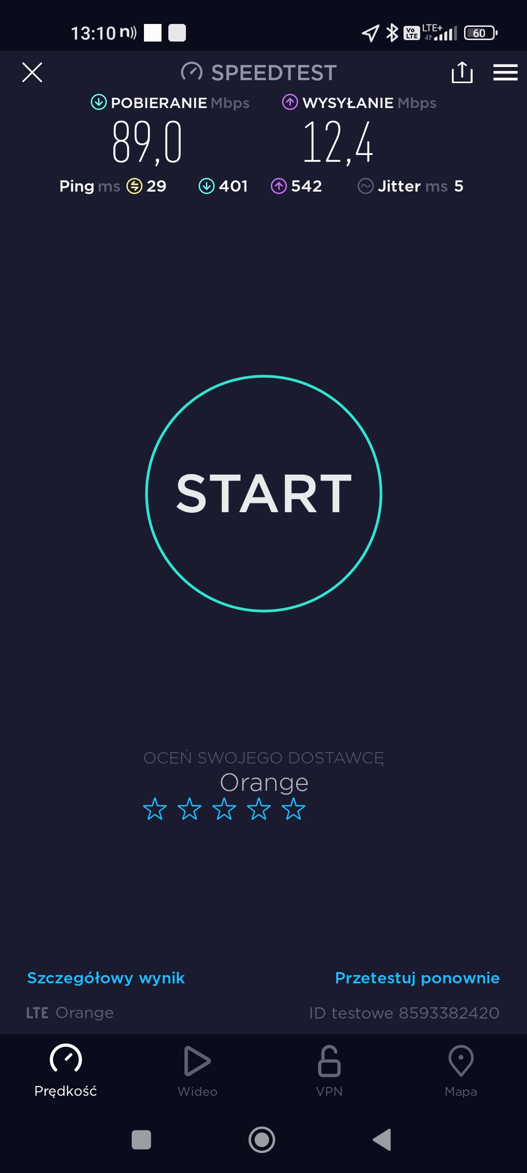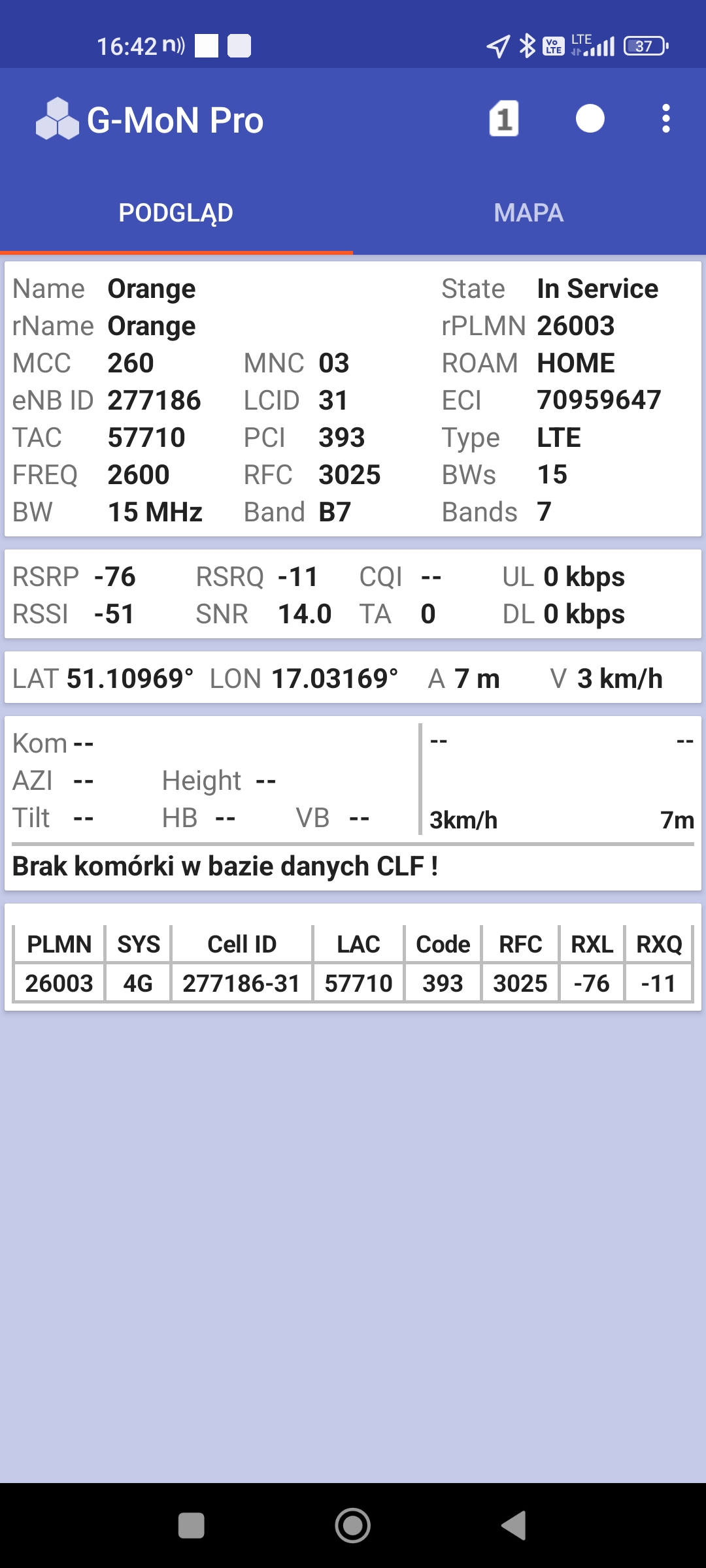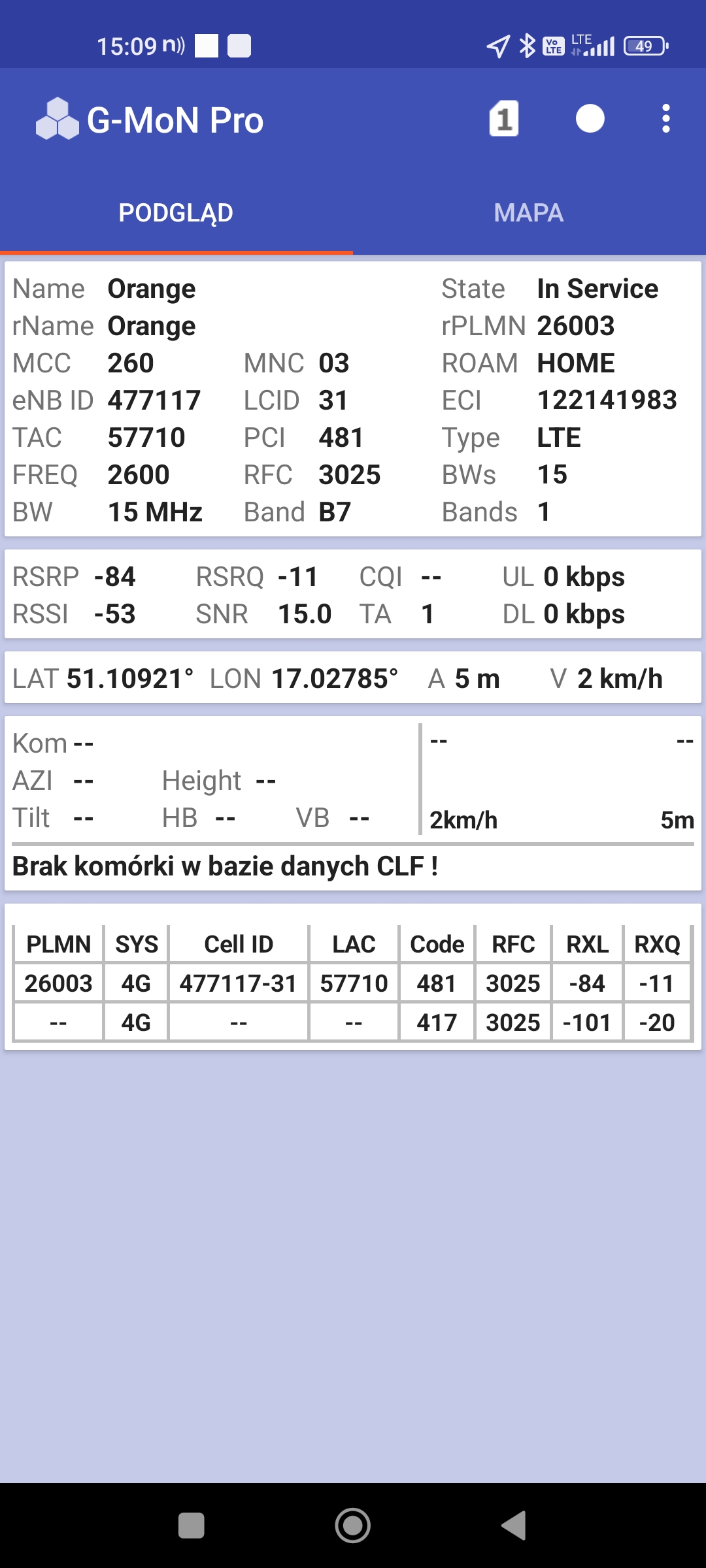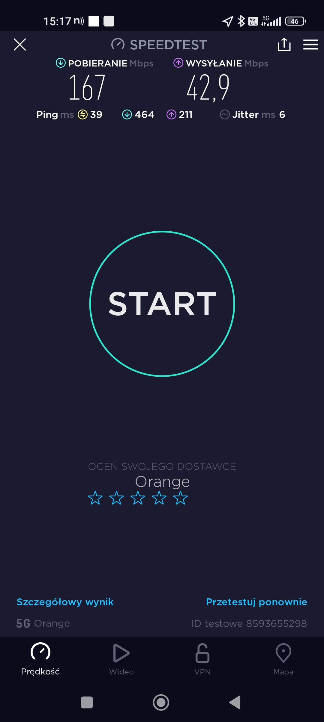 2.Orange: 39, 167 Mb/s, 42,9 Mb/s. Tylko jeden pomiar.