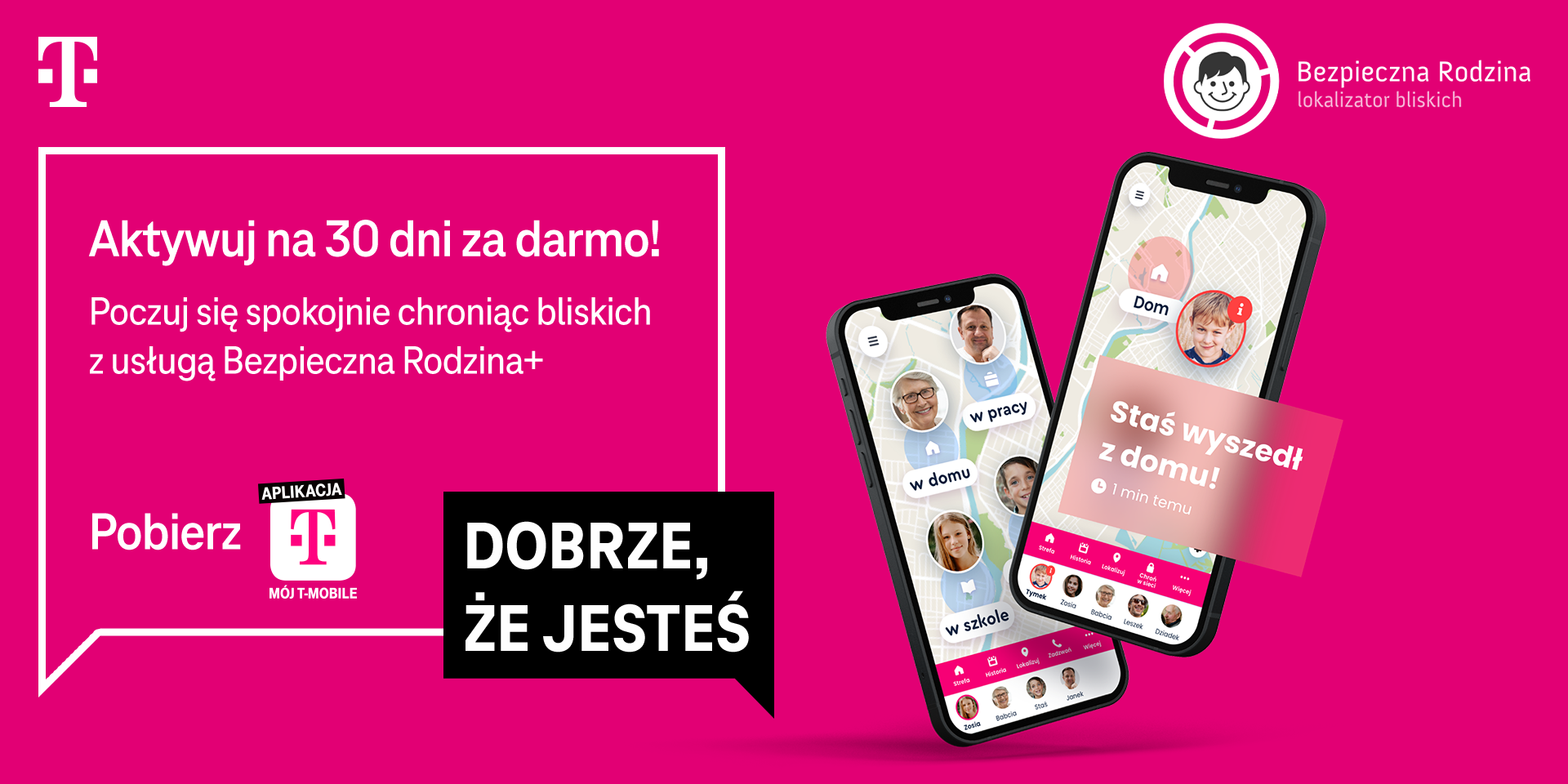 Kontakt z bliskimi jest naturalną potrzebą każdego człowieka, ale czasem zdarza się, że próba dodzwonienia się do partnera, mamy, dziecka czy przyjaciela jest daremna. Jak wtedy sprawdzić, czy nasza rodzina jest bezpieczna? T-Mobile przychodzi z pomocą i oferuje klientom indywidualnym możliwość bezpłatnego korzystania z usługi „Bezpieczna Rodzina+” bez limitów przez 30 dni. Dzięki temu każdy rodzic będzie spokojniejszy, że jego dziecko przebywa w odpowiednim miejscu, a ponadto uczy się samodzielności. Aplikacja ta pozwala na proste i wygodne sprawdzenie lokalizacji członków całej rodziny, a także daje możliwość reagowania w sytuacjach zagrożenia, np. kiedy osoba starsza oddali się z ustalonego adresu.