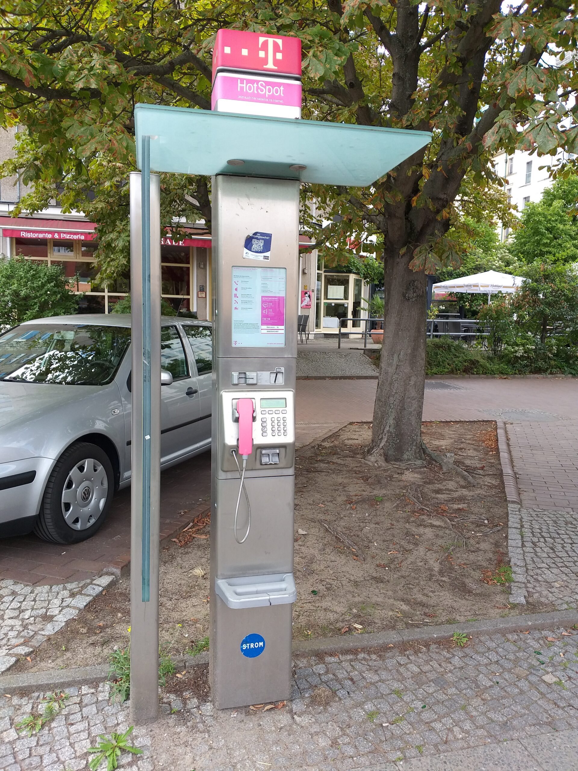 W Berlinie możemy spotkać również budki telefoniczne sieci T-Mobile. Sprawdziliśmy – działają i są przez operatora na bieżąco sprawdzane pod względem jakości głosu, emitowanego przez słuchawki terminala oraz skuteczności realizowanych połączeń. Oprócz funkcji tradycyjnej budki telefonicznej – urządzenia spełniają również funkcję hotspotów publicznych.