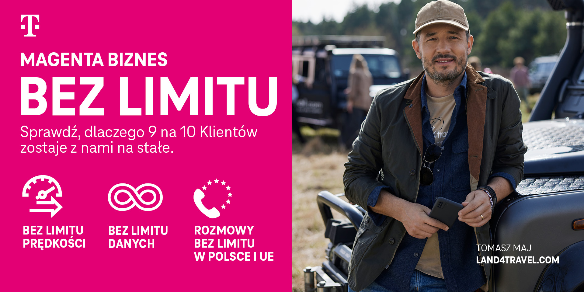 Dlatego w ramach kolejnej odsłony kampanii MagentaBIZNES będzie można ponownie zobaczyć trzech naszych zadowolonych klientów: cukierniczkę Dominikę Matysiak (Domo Bake), architekta Jakuba Szczęsnego (Studio Projektowe SZCZ) i właściciela firmy turystycznej „offroad” Tomasza Maja (Land4travel), którzy od lat korzystają z naszych usług. Choć każdy z nich mierzy się na co dzień z różnymi wyzwaniami, to łączy ich jedno – totalny brak limitów w ofercie MagentaBIZNES.