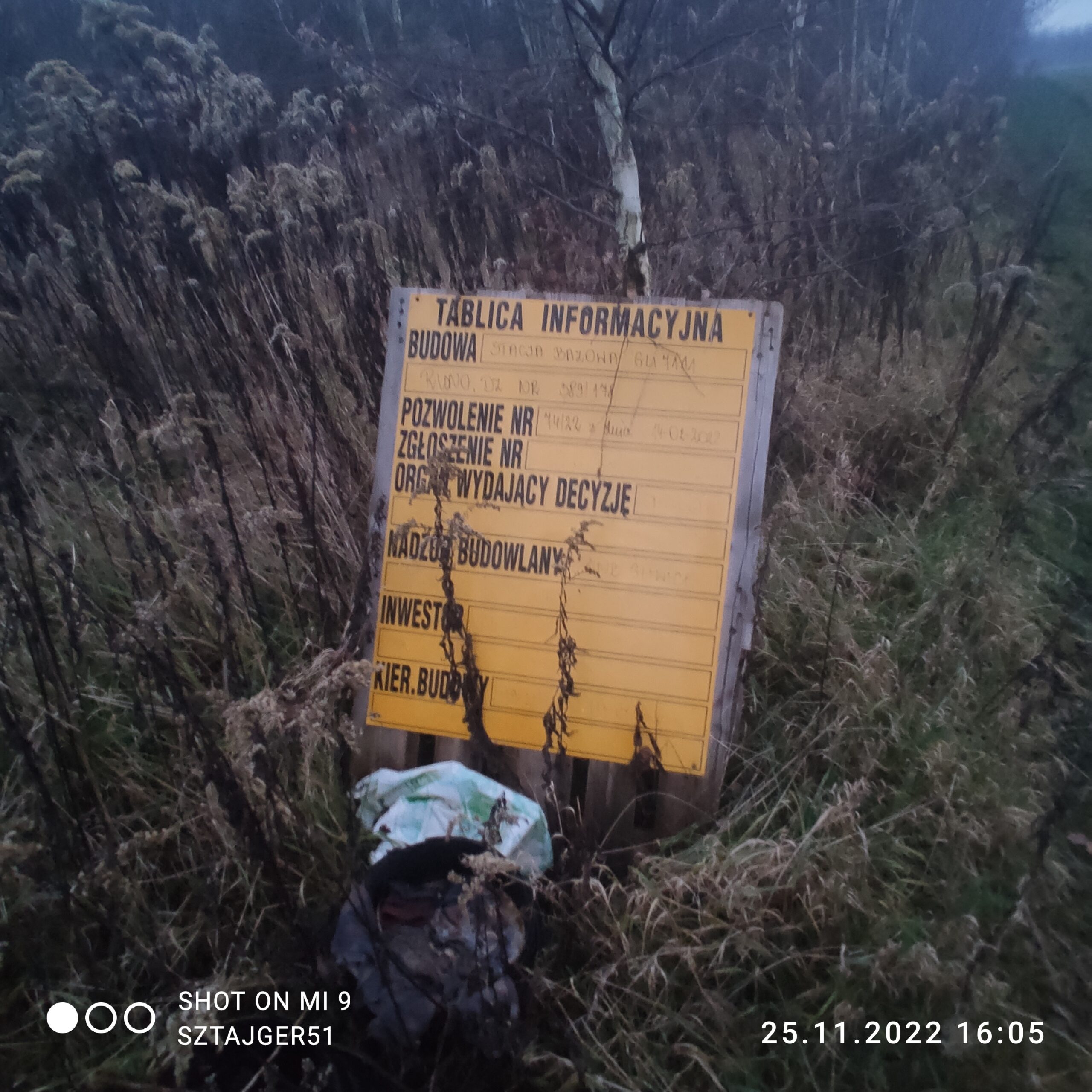 a) przy podejściu pod stację zobaczymy pozostawioną przez podwykonawcę, porzuconą w trawie tablicę informacyjną budowy