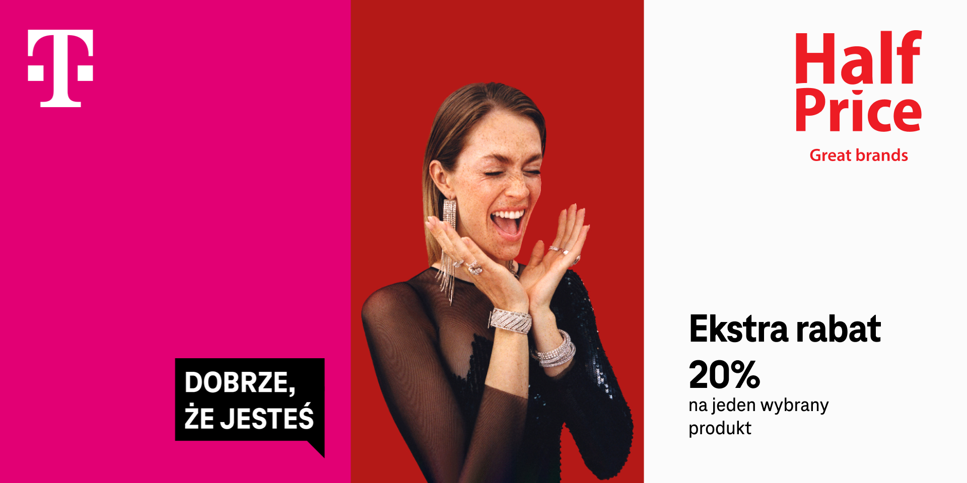 Oferta dostępna jest w aplikacji „Mój T-Mobile” w sekcji „Benefity” od 15 do 23 grudnia. Z rabatu można skorzystać w serwisie https://www.halfprice.eu/pl/ lub w sklepie stacjonarnym. Kod obniża o 20% cenę najdroższego produktu w koszyku i – co ważne – działa również na produkty przecenione (ale nie łączy się z innymi kodami rabatowymi i promocjami). Zniżka może być wykorzystana przez osoby będące uczestnikami programu lojalnościowego KLUB HalfPrice lub CCC. Z oferty mogą skorzystać klienci posiadający oferty: Postpaid (T, T DATA, Rodzina), Prepaid (GO!, Frii), Mix (Frii Mix), MagentaBiznes, Magenta Biznes Internet, Jump proFirma, Data Jump ze zgodą na „Partnerzy Marketing”.