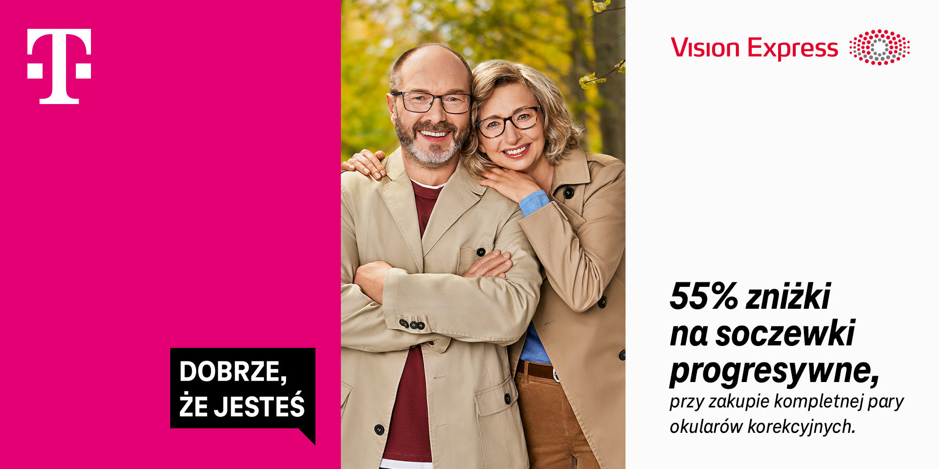 Zgarnij od T-Mobile 55% zniżki na progresywne soczewki okularowe w salonach Vision Express