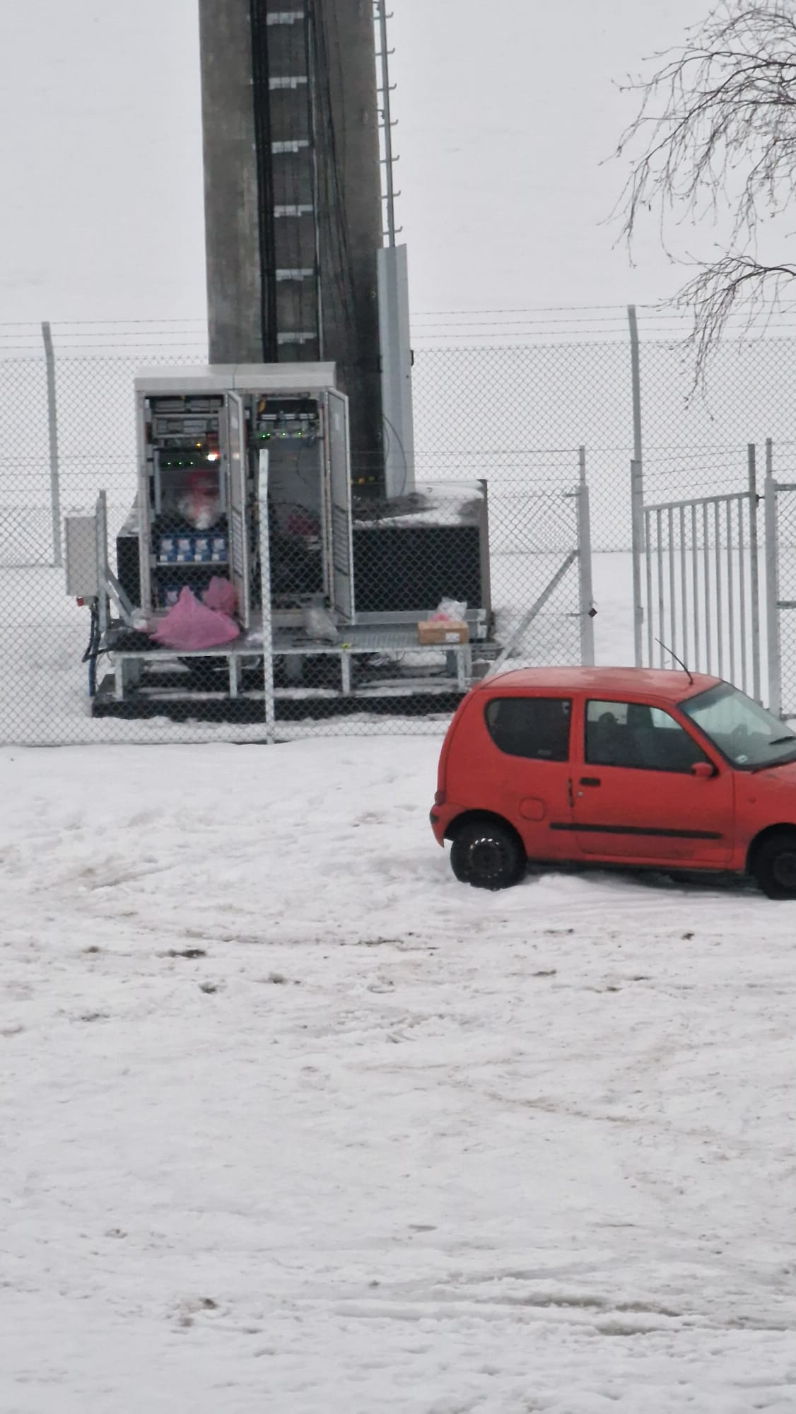 „Kiedy w namiocie technicznym powoli odkładałem na półkę sprzęt pomiarowy, a z oddali słychać było tylko uliczny szum i zapadała decyzja o odpoczynku – naraz wraz ze zgrzytem śniegu usłyszałem szum silnika niemal tuż obok mnie. No, nie może być – ta pora i będą kontynuowane prace przy stacji, nad którą czuwam? Jeśli tak, trzeba włączyć drugi bieg i rozpocząć aktywność” – tak rozpoczyna się relacja naszego redakcyjnego Kolegi, który od jakiegoś czasu niezmiennie czuwa nad śledzeniem procesu budowy stacji T-Mobile w Jeleniej Górze, przy ul. Sadowej. Dziś prace kontynuowano i to mimo tego, że powoli zaczęło się ściemniać.