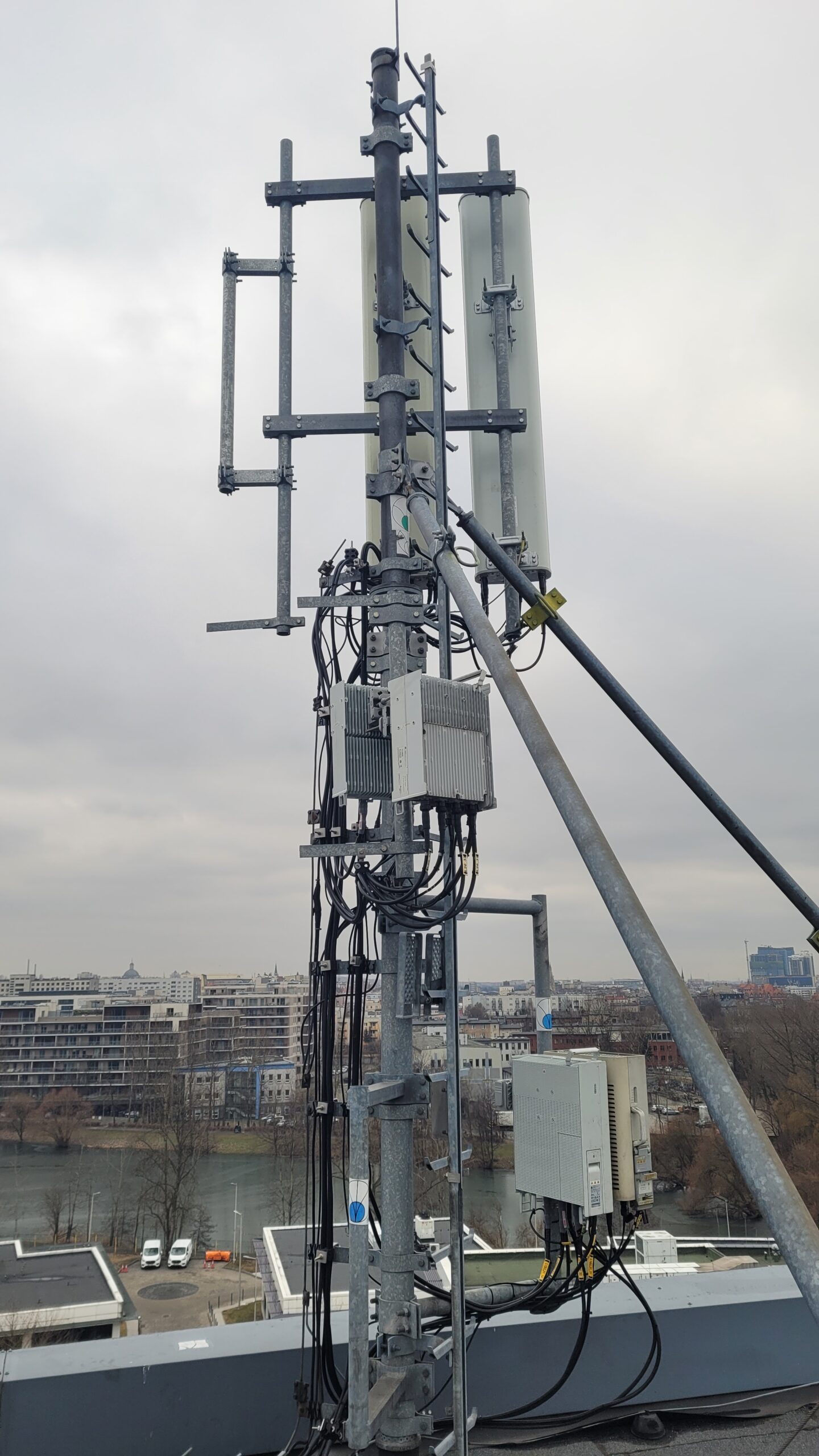 Jak informuje nasz śląski Korespondent, operatorzy globalni rozbudowują stację bazową przy ul. Murckowskiej 14 w Katowicach. Lokalizacja: dach budynku biurowego Green Park. Jak zobaczymy na fotografiach niżej – dołożono kolejne wsporniki, sugerujące instalację nieco krótszych anten sektorowych. Ponieważ podobne prace realizowane są w sporej ilości stacji w kraju – wiele wskazuje na przygotowania pod montaż zestawów antenowych dla 5G 3.6GHz. Przy okazji stacji, o której mowa warto również przystanąć na moment na staranności instalacji, która sporo odbiega od tego, co mogliśmy zobaczyć w przypadku operatorów globalnych jeszcze kilka lat temu. Właścicielem stacji przy ul. Murckowskiej 14 jest Orange. Kodowy numer operatora, to 12782. Adres eNodeB w segmencie LTE, to 232395. Współrzędne geograficzne lokalizacji: 50.255556N / 19.046944E.