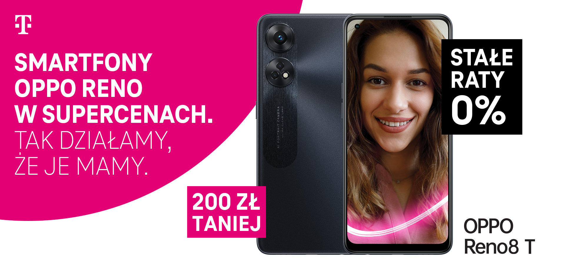 W marcu nie brakuje okazji do tego, by sprawić komuś prezent. Dla tych, którzy stawiają na upominki technologiczne, mamy dobre wieści – w T-Mobile przygotowaliśmy ofertę, w ramach której do 27 marca smartfony z serii OPPO Reno można zgarnąć nawet 400 zł taniej. Trwa również promocja na smartfony z serii Samsung Galaxy S23. Wyjątkowy, autorski design GLOW, mocna bateria o pojemności 4300 mAh, która szybko się ładuje dzięki opcji SUPERVOOC, potrójny zestaw obiektywów i ciekawe tryby wideo – to tylko kilka powodów, dla których warto zainteresować się smartfonem OPPO Reno 6 5G 128GB. Model ten jest dostępny do 27 marca w T-Mobile za 1899 zł w taryfie abonamentowej, czyli o 400 zł taniej niż dotychczas. Zaś ci, którzy chcieliby robić doskonałe zdjęcia portretowe telefonem wyposażonym w aparat o rozdzielczości 100 MP, powinni rozważyć model OPPO Reno8 T 8/128GB, który w magentowej sieci mogą mieć o 200 zł taniej, czyli za 1399 zł. Zakup telefonów OPPO jest możliwy z ofertą abonamentową dostępną w T-Mobile, a także bez umowy na usługi. Urządzenia dostępne są w opcji raty 0%.