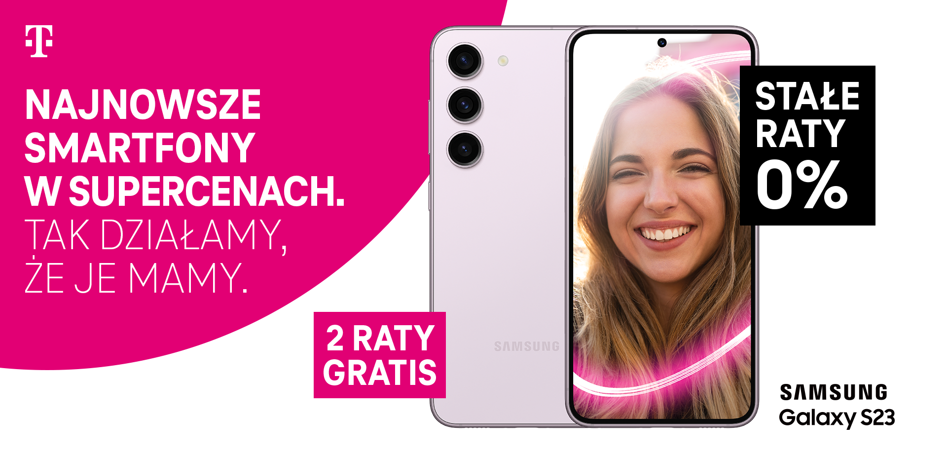 Z kolei dla tych, którzy szukają smartfona, dzięki któremu robienie zdjęć, nawet nocą, będzie czystą przyjemnością, dobrym wyborem będzie model Samsung Galaxy S23 5G 8/256 GB, który do 21 marca można zgarnąć w T-Mobile z dwiema pierwszymi ratami gratis. W taryfie abonamentowej „M Nielimitowanej” i „L Nielimitowanej” klient zyskuje nielimitowane połączenia, SMS-y i MMS-y oraz nieograniczony limitem GB dostęp do sieci 5G w smartfonie. Klient sam może zdecydować o wysokości rat w umowie – wynoszą one od 140 zł do 200 zł.