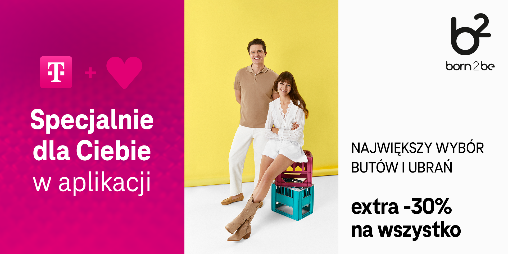 Ile osób, tyle interpretacji mody. Z tego powodu dla klientów T‑Mobile planujących zakupy w Born2be przygotowaliśmy 30-procentowy rabat, który obejmuje cały asortyment sklepu. Aby z niego skorzystać, wystarczy pobrać kod z aplikacji „Mój T‑Mobile”, z sekcji „Benefity”, a następnie na stronie born2be.pl wybrać interesujące produkty, przejść do koszyka i w zakładce „Kod promocyjny” uzupełnić pole. Ze zniżki można skorzystać wielokrotnie i obejmuje ona również przecenione pozycje. Kod jest ważny do 5 kwietnia 2023.
