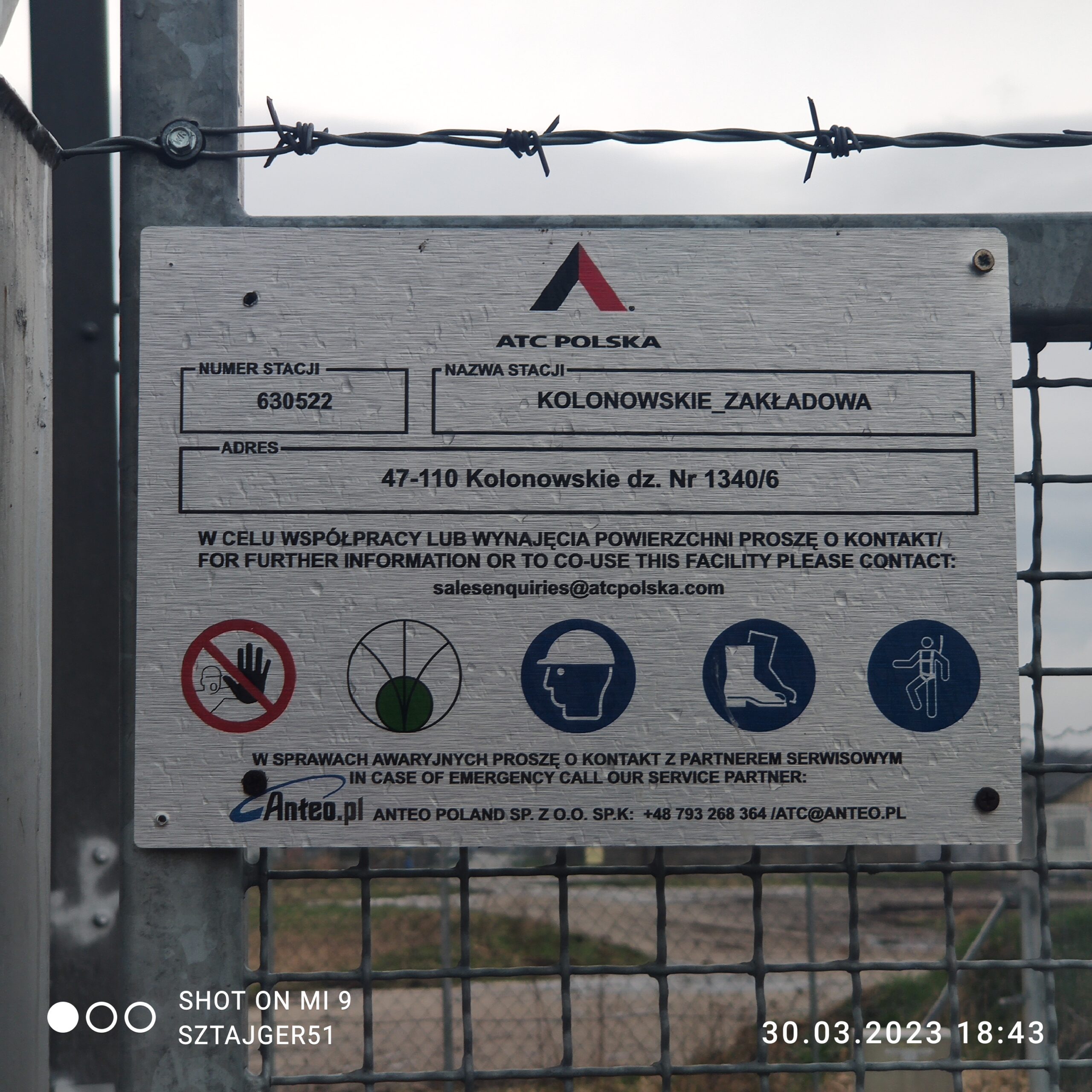 Zainteresowanym rozwiązaniami stacji bazowych prezentujemy zdjęcia stacji Play oraz Orange (pracuje również T-Mobile) w mieście Kolonowskie, w województwie opolskim, przy ul. Zakładowej. Obiekt: maszt Orange. Ciekawostką jest rozwiązanie szafy outdoor Play, która sugeruje możliwość zainstalowania większej ilości sprzętu. Bardziej efektywny jest również system chłodzenia. Kodowy numer stacji Play: STR7104. Zestawy antenowe Play zainstalowano poniżej zestawów operatorów globalnych. W Play w LTE pracuje 4xCA, u operatorów globalnych 3xCA bez LTE2600.