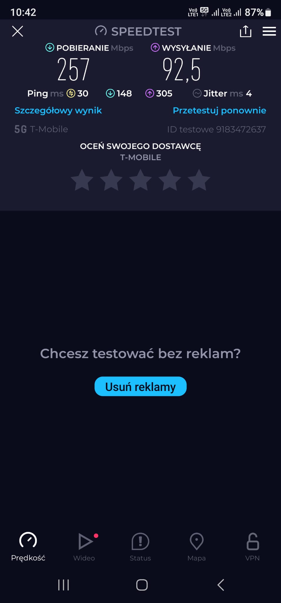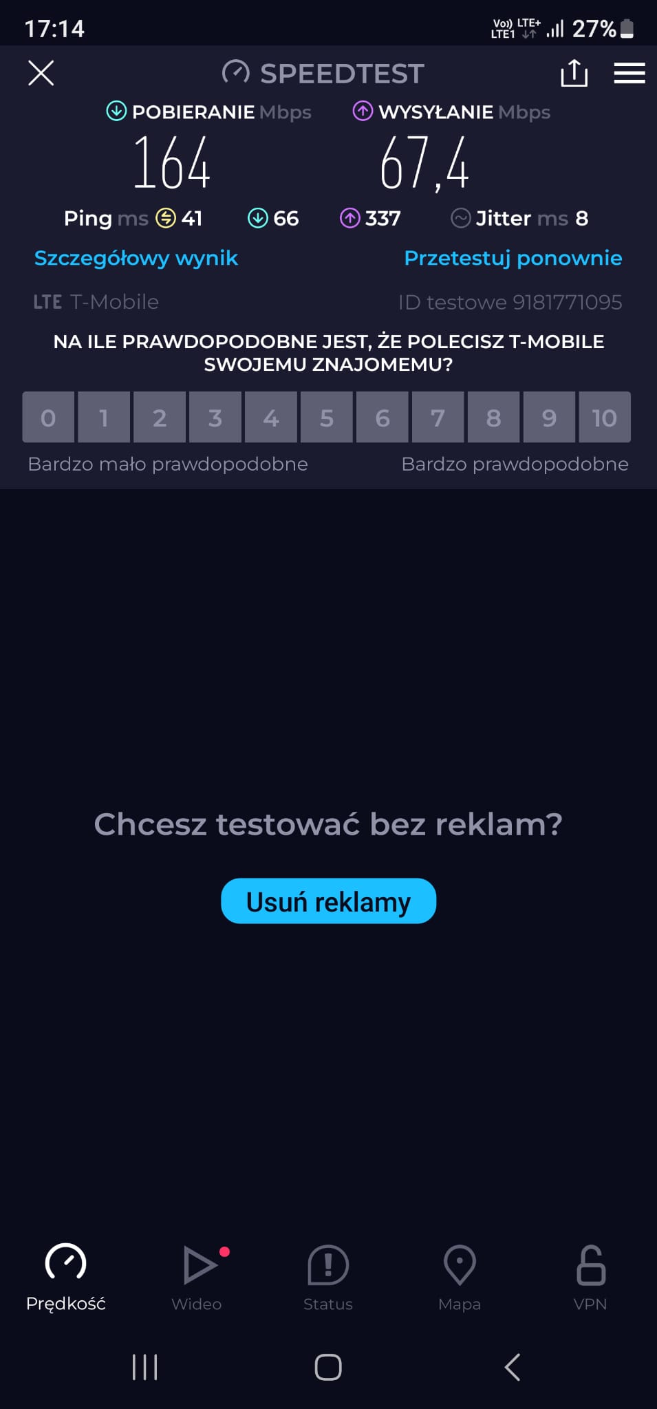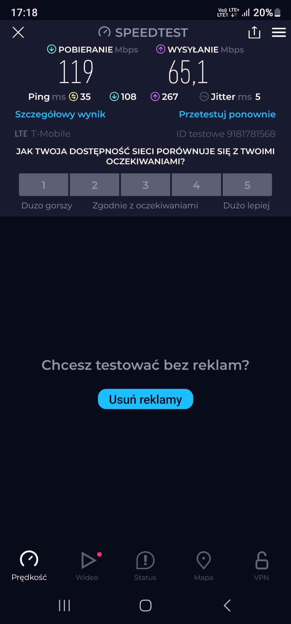 Poniżej zrzuty ekranów z aplikacji testowych dla nowo uruchomionej stacji T-Mobile przy ul. Sadowej w Jeleniej Górze w segmentach: LTE oraz 5G oraz zdjęcia samej stacji. Stacja pracuje w modelu trzysektorowym. Z racji braków w sygnale w sąsiedztwie – sugerowana jest pilna rozbudowa do czterech sektorów.