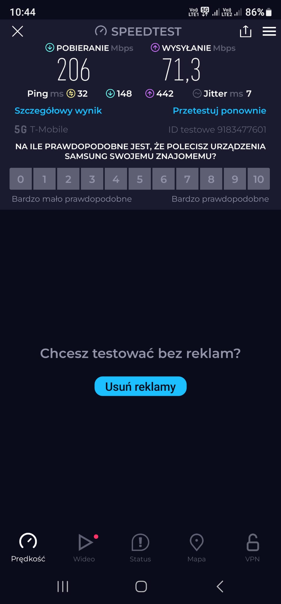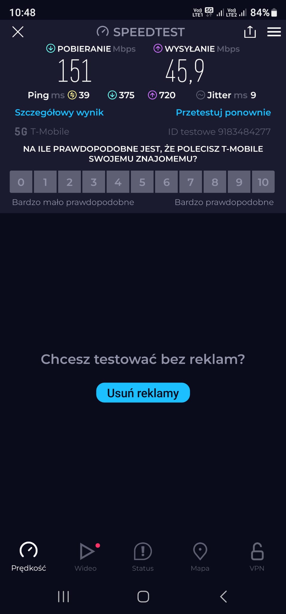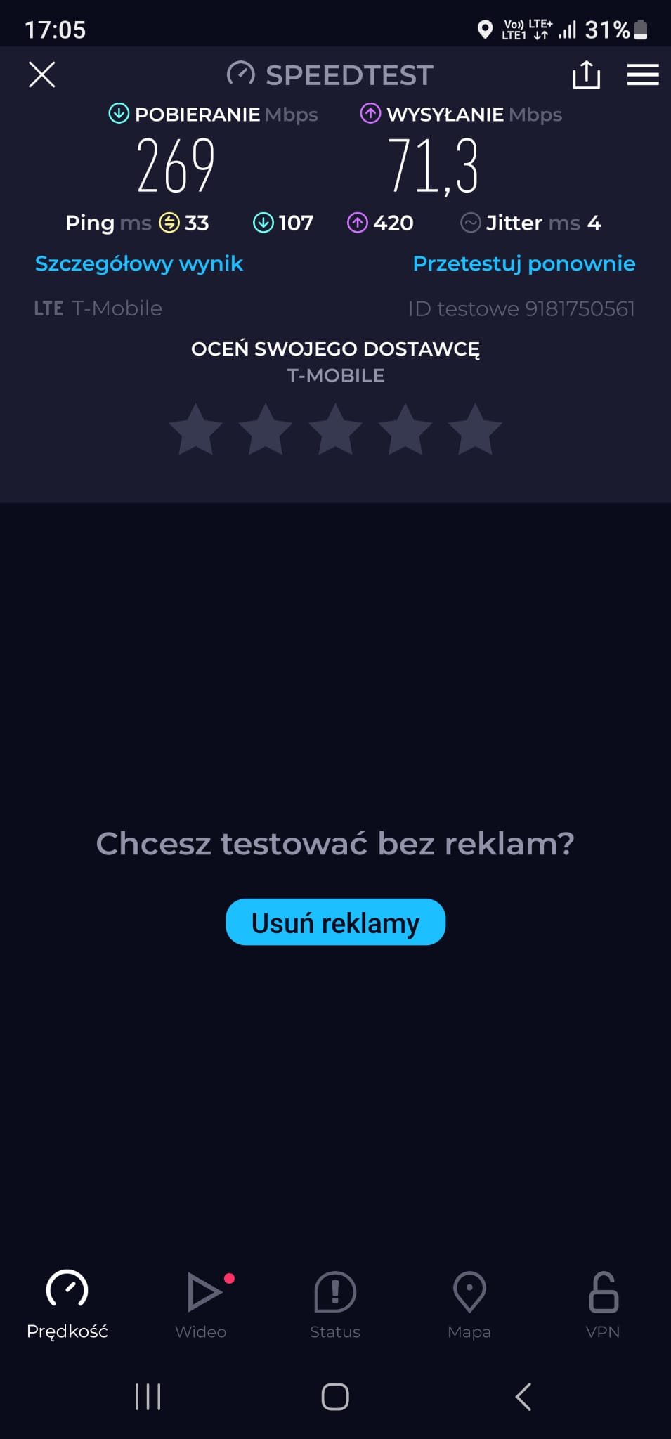Poniżej zrzuty ekranów z aplikacji testowych dla nowo uruchomionej stacji T-Mobile przy ul. Sadowej w Jeleniej Górze w segmentach: LTE oraz 5G oraz zdjęcia samej stacji. Stacja pracuje w modelu trzysektorowym. Z racji braków w sygnale w sąsiedztwie – sugerowana jest pilna rozbudowa do czterech sektorów.