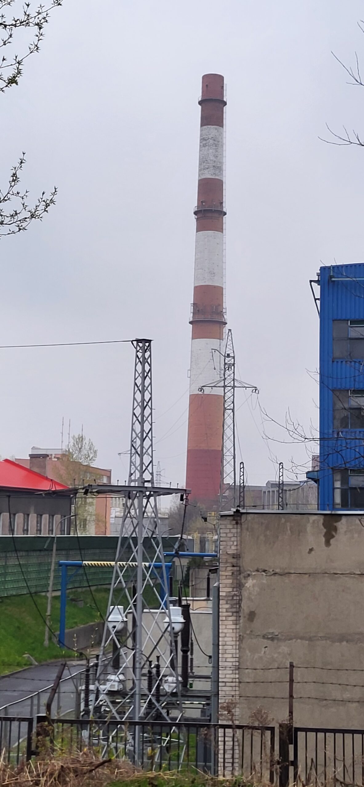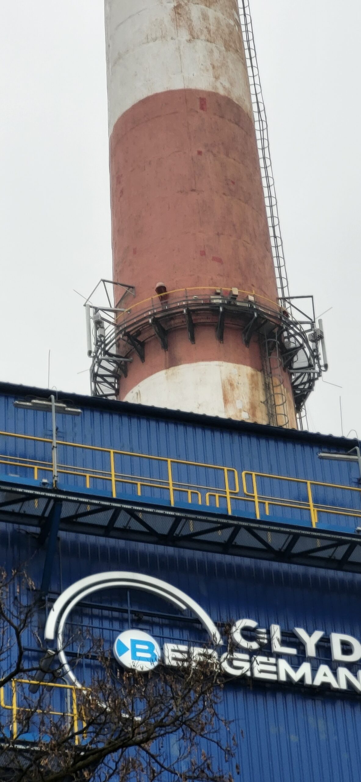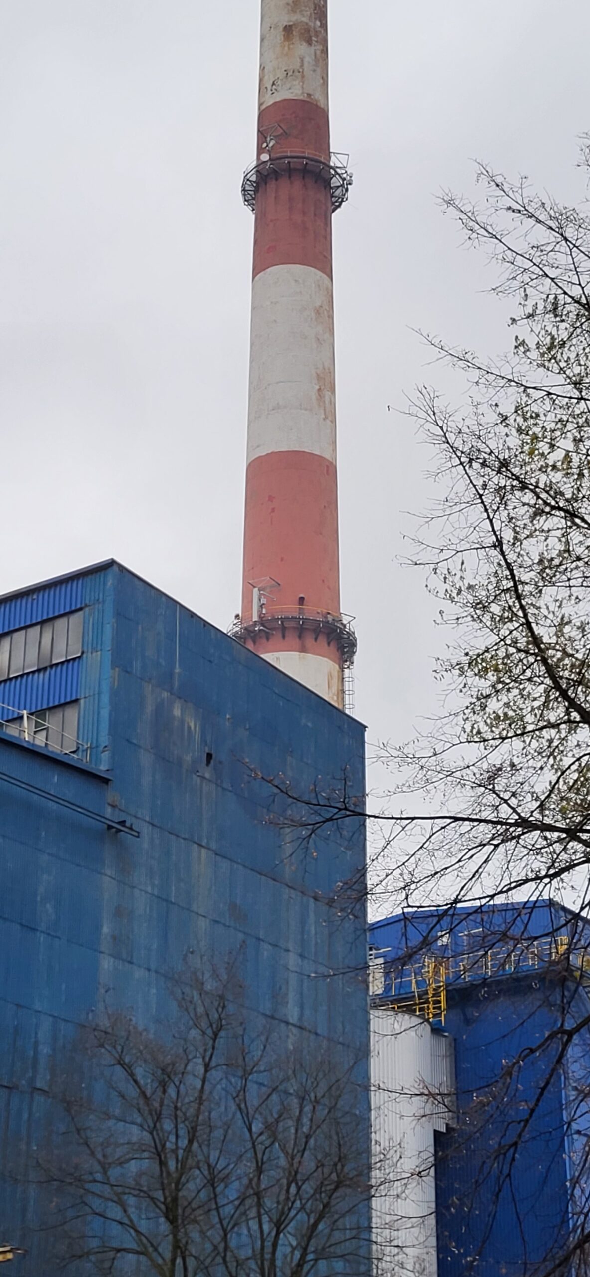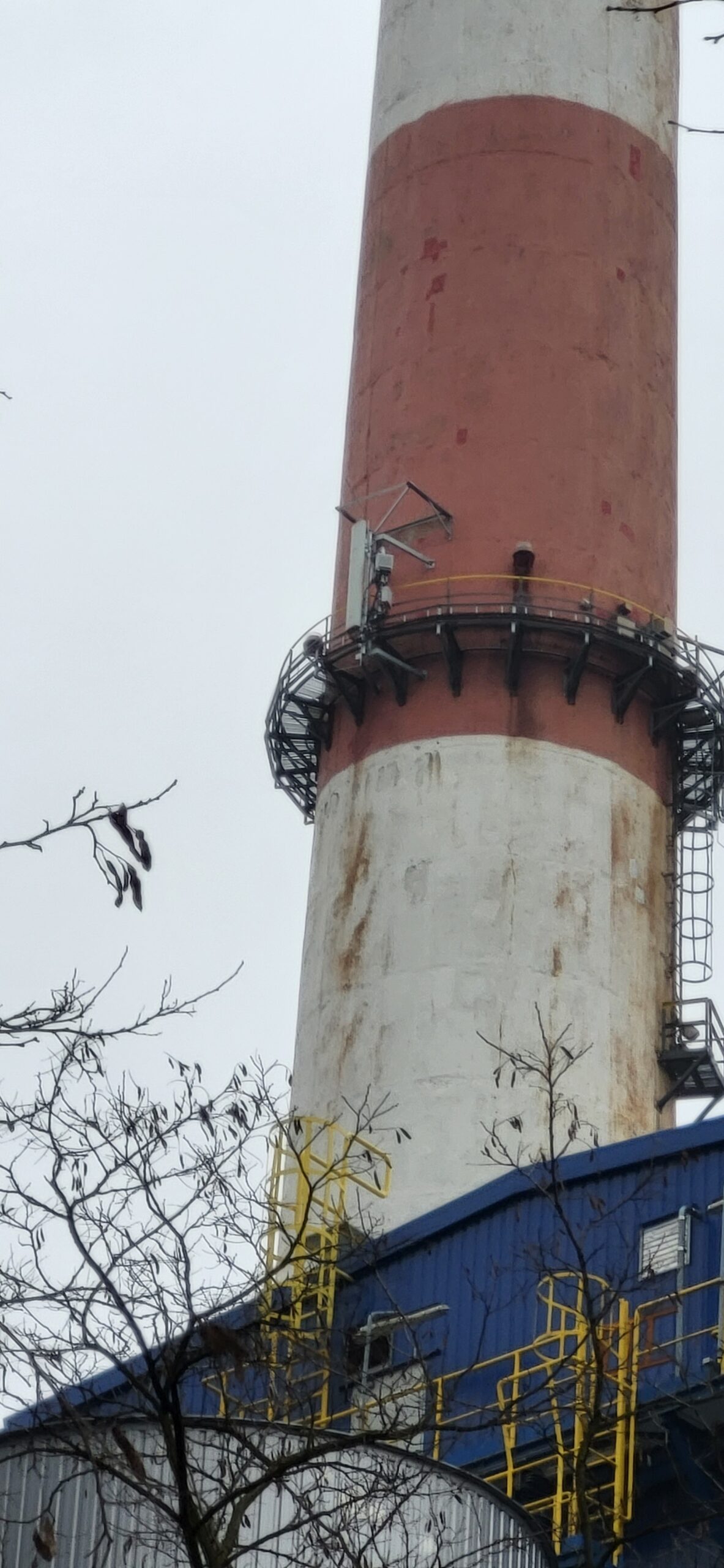 1. zdjęcia komina, na którym pracowała stara stacja (pozostały po niej wsporniki)