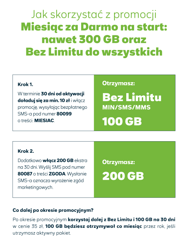 – włączyć promocję, wysyłając bezpłatny SMS pod numer 80099 o treści „Miesiac”.