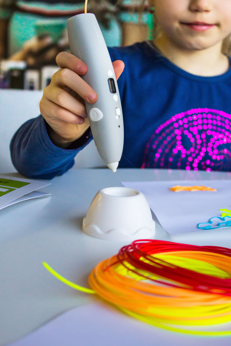 Długopis 3D to bezprzewodowe urządzenie do przestrzennego budowania elementów nie tylko dla dzieci, zabawę mogą czerpać z tego również dorośli. Do zestawu dołączono książeczkę z przykładowymi wzorami, ale tworzenie w 3D jest nieograniczone. Długopis jest w pełni bezpieczny, ponieważ temperatura topienia filamentu PCL (czyli koloru) jest niska. Jej zakres wynosi od 65 do 90 stopni Celsjusza. Produkt jest w pełni bezprzewodowy, a dzięki lekkości i wygodnemu wyprofilowaniu z łatwością się go obsługuje. Urządzenie pozwala na 2 prędkości podawania filamentu. Do zestawu dołączono aż 10 różnych kolorów – po 5 metrów każdy, stojak na długopis oraz przewód USB do ładowania.