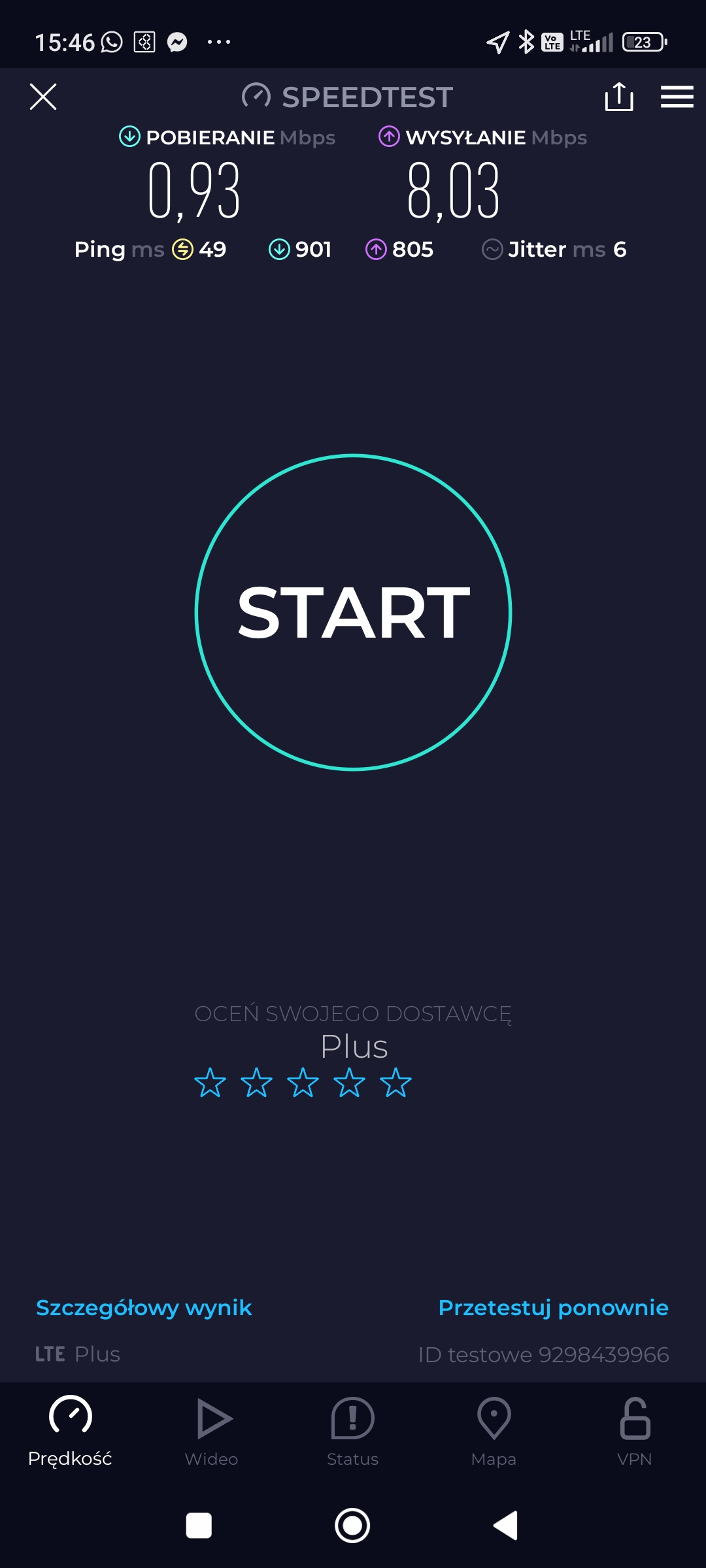 W T to w zasadzie bez różnicy. LTE a 5G różni się przeważnie uploadem 🙂 Zresztą proszę, samo LTE: https://www.speedtest.net/my-result/a/9299120456