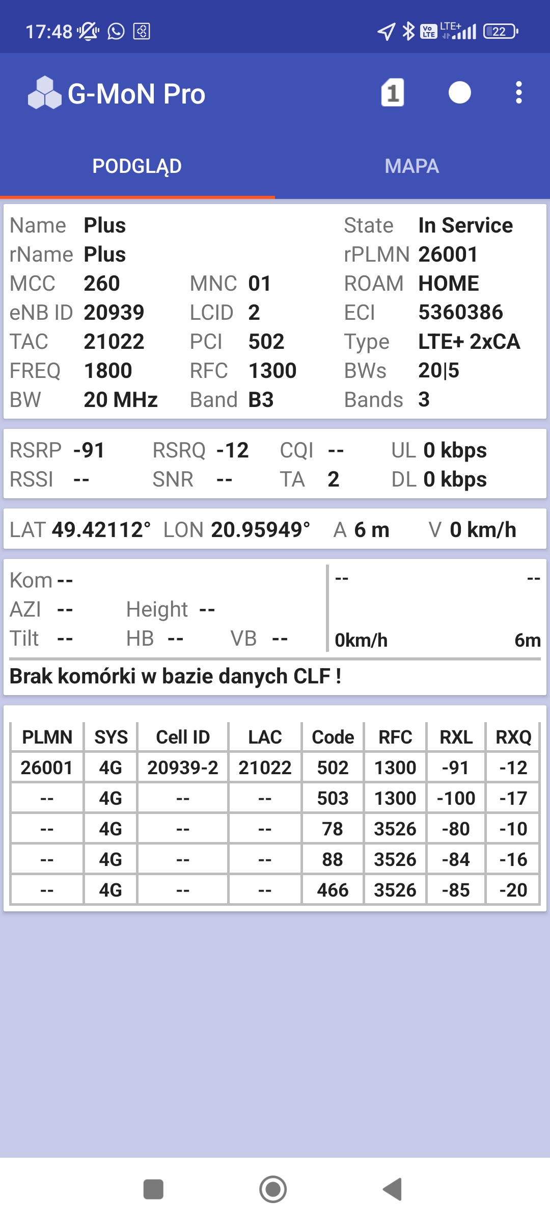 że jest to jedno z nielicznych miejsc gdzie Plus daje radę na tle konkurencji 😉 Widać, aktualnie nawet w Krynicy, Plus już nie zachwyca… Chciałoby się powiedzieć, dno i kilometr mułu. A jeszcze w 2021 w lipcu (czyli w sezonie) Plus na wspomnianych nadajnikach śmigał 100-170 mega. Jedyne co, to podczas burzy Plus padał całkowicie (dostępne tylko szczątkowe 3G), a T sieć normalnie dostępna.