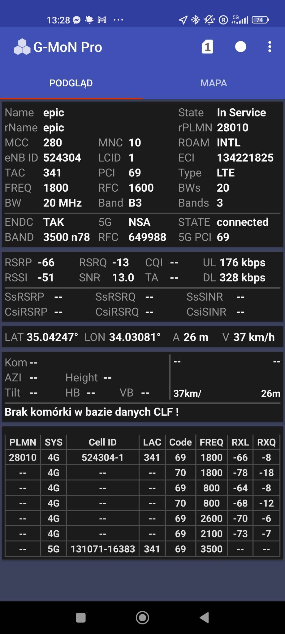 Koleżanka, goszcząca na Cyprze nie próżnuje. I choć szum fal lekko rozleniwia, to siła spojrzenia na wyświetlacz z dobrymi informacjami jest motywująca. Poniżej zrzuty ekranów wraz z fotografią stacji bazowej dla sieci epic. Terminal z kartą SIM sieci Plus został zalogowany w roamingu do 5G NSA z wykorzystaniem kotwicy 20MHz L3 oraz pasma wiodącego dla 5G o częstotliwości band78 3500MHz. Podobne rozwiązanie prezentowaliśmy naszym Czytelnikom przy okazji pobytu na Targach Elektroniki Konsumenckiej IFA2022 w zeszłym roku w Berlinie, choć prędkości nie były wtedy tak imponujące. Test zrealizowano w Paralimni.