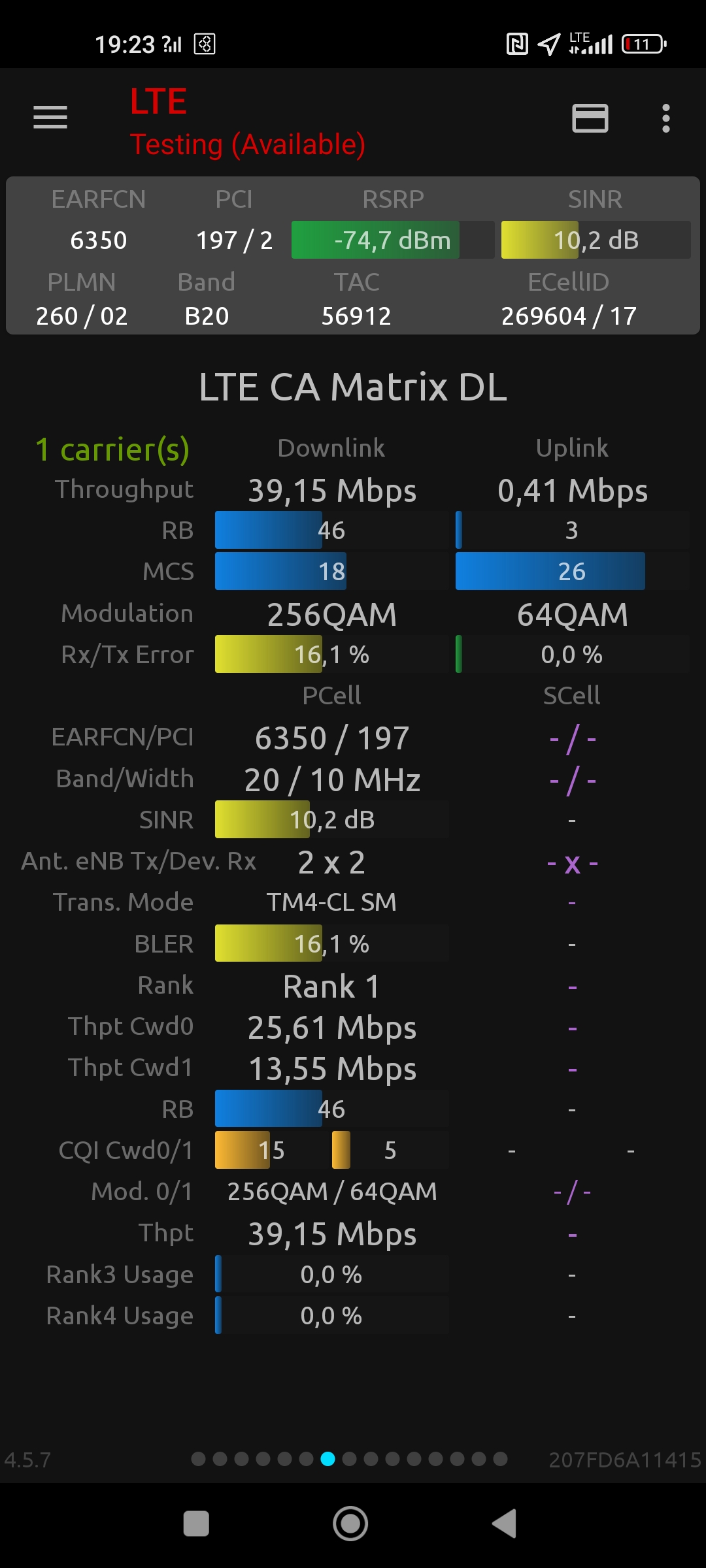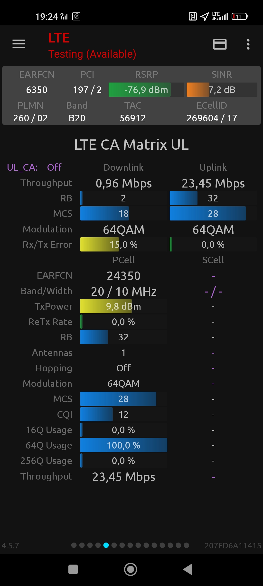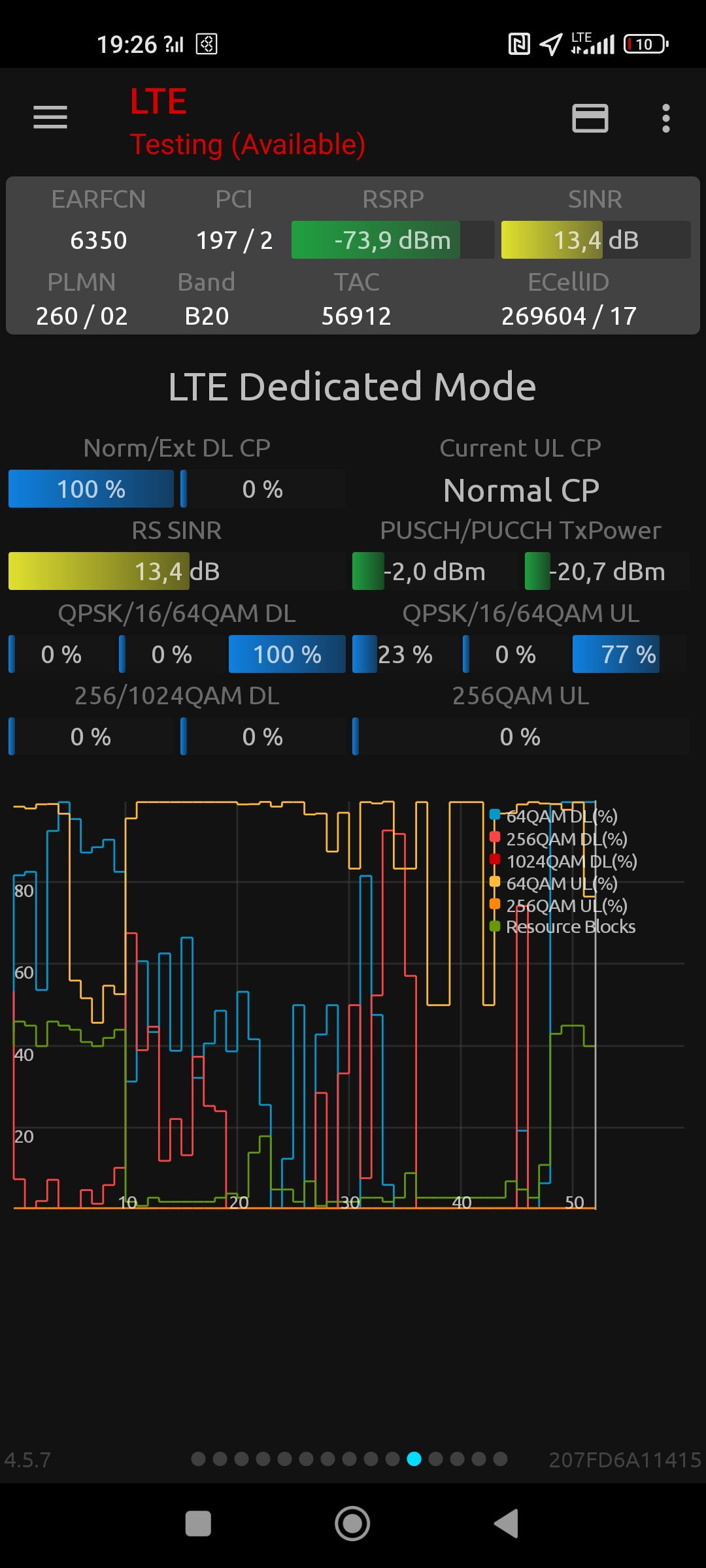 Biorąc pod uwagę że mamy tutaj obecną modulację Q256 to wyniki mogłyby być znacznie lepsze mimo samego L800.