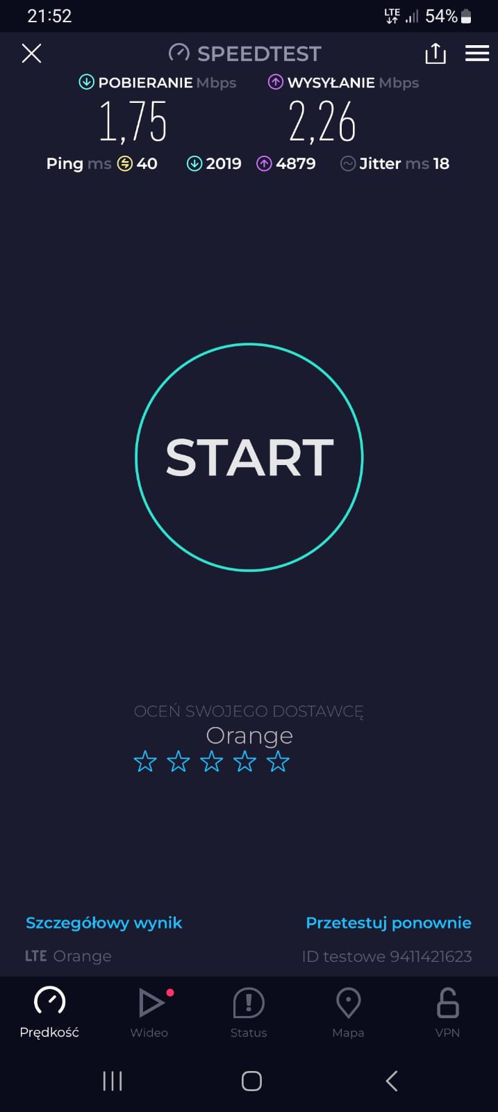 Co to za telefon, jakiś gruchot bez agregacji. Jak na samo pasmo 1800 w Cat4 to przy takiej imprezie i tak dobry wynik. Fotki da się wysłać, komunikator działa. Chyba nikt nie przyszedł na ten stadion, żeby oglądać na telefonie film w streamingu 2k.
