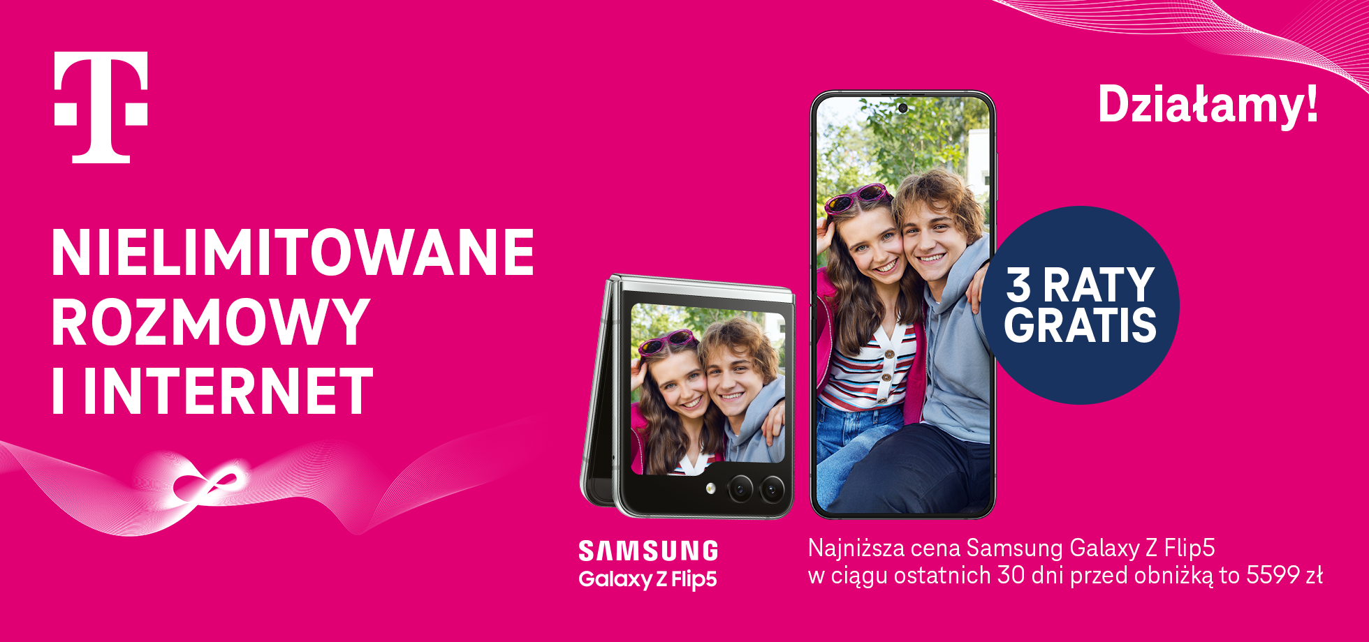 Samsung Galaxy Z Flip5 z nielimitowanymi rozmowami i Internetem od T‑Mobile!