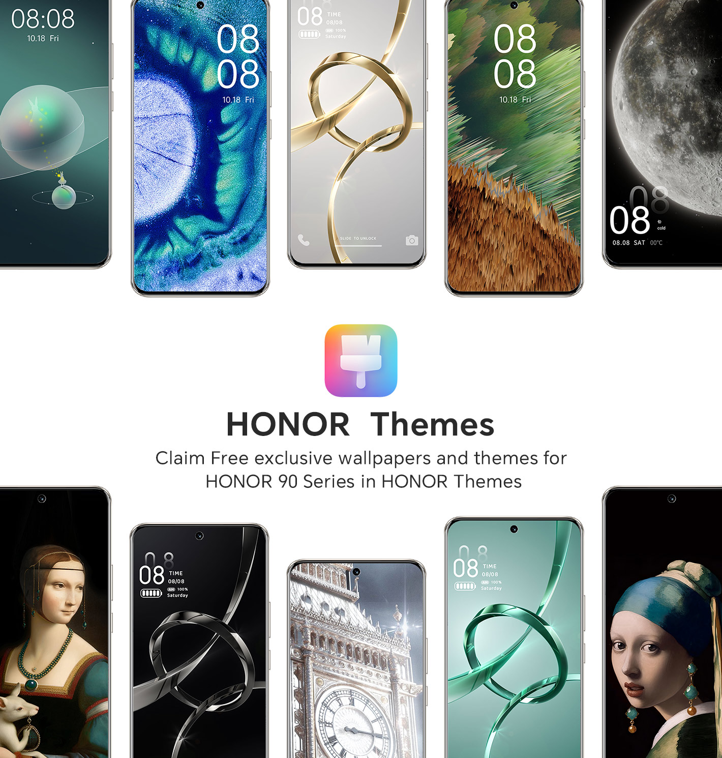Warszawa, 13 września 2023r., HONOR, globalna marka technologiczna, wprowadza nowe, darmowe motywy oraz tapety, dostępne wyłącznie dla modelu HONOR 90. Grafiki stworzone przez fanów w konkursie, wygenerowane przez AI, ale też takie z najsłynniejszymi dziełami sztuki oraz znanymi widokami, dostępne są za pośrednictwem aplikacji Motywy i pozwalają na jeszcze większą personalizację smartfonów. HONOR 90, dzięki swojemu 200 MP aparatowi oraz ekranowi potrafiącemu oddać nawet najdrobniejsze szczegóły zdjęć, jest urządzeniem stworzonym do dzielenia się emocjami użytkowników. Teraz HONOR chce ułatwić posiadaczom smartfonów marki wyrażanie siebie, poprzez udostępnienie szeregu atrakcyjnych motywów oraz tapet.
