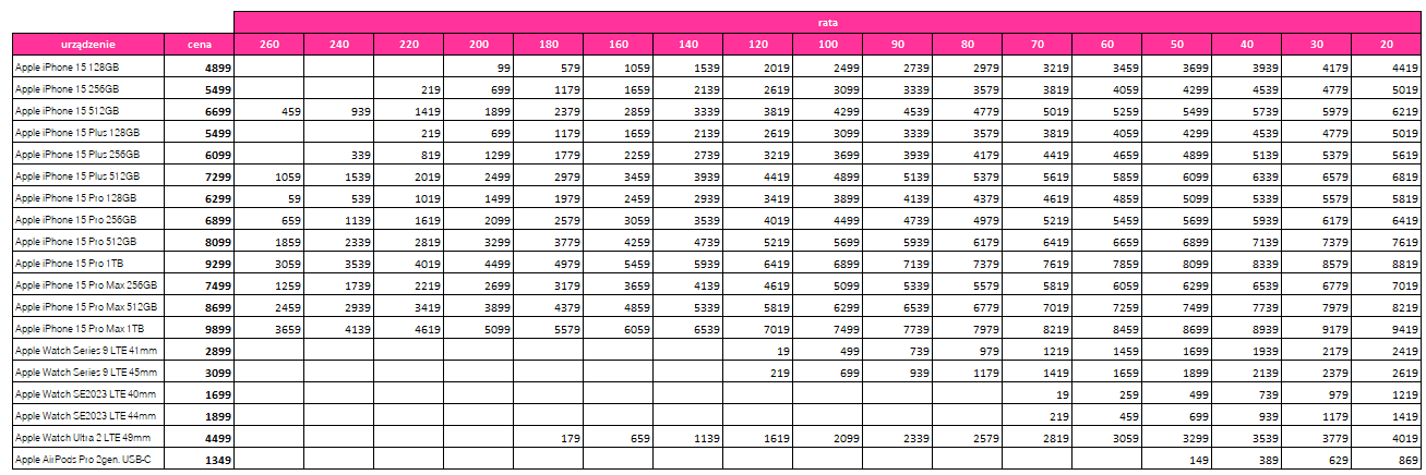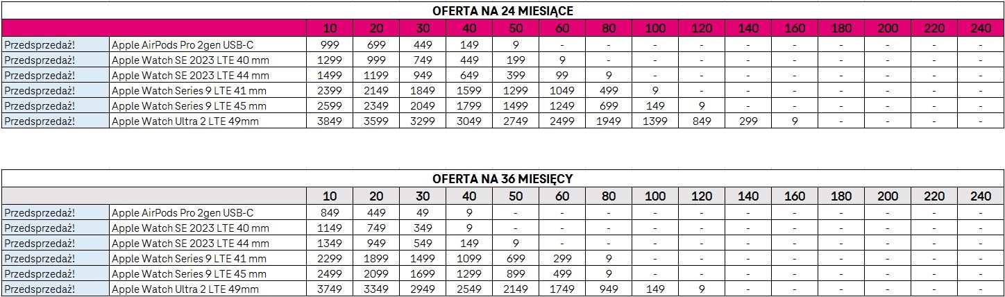 Dla klientów indywidualnych nowe urządzenia od Apple w T-Mobile dostępne są w następujących cenach w ratach 0% na 24 miesiące: