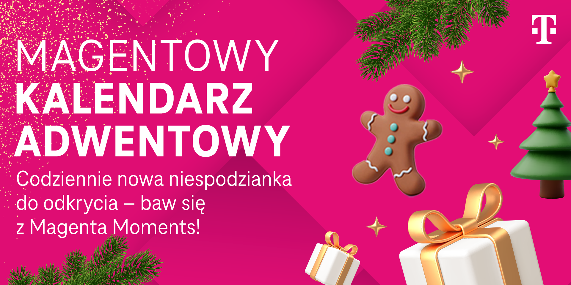 Kto nie lubi kalendarzy adwentowych? To świetna zabawa umilająca czas oczekiwania do świąt. A jak kalendarz adwentowy, to również niespodzianki. Tych od 1 grudnia w T-Mobile na pewno nie zabraknie. Zapraszamy naszych klientów do ich codziennego odkrywania w magentowym kalendarzu dostępnym w aplikacji „Mój T-Mobile”. Każdego dnia świetna zabawa – coś nowego i zaskakującego! Nic tak nie umila grudniowych dni, jak kalendarze świąteczne. Miła niespodzianka każdego dnia zdecydowanie poprawia nastrój. Doskonale to wiemy, dlatego dla naszych klientów w aplikacji „Mój T-Mobile” w programie Magenta Moments przygotowaliśmy kalendarz świąteczny w wersji cyfrowej, a w nim 24 okienka z bonusami, które z pewnością sprawią radość.