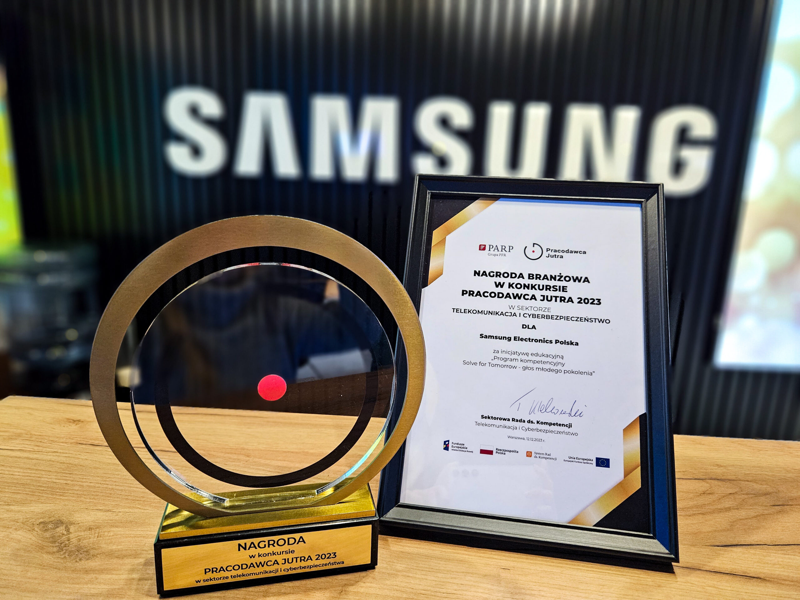 Polska Agencja Rozwoju Przedsiębiorczości rozstrzygnęła VII edycję konkursu „Pracodawca Jutra”. Celem inicjatywy jest wyróżnianie i promowanie podmiotów ze świata biznesu, które w modelowy sposób wspierają edukację. Firma Samsung Electronics Polska otrzymała nagrodę dla sektora telekomunikacji i cyberbezpieczeństwa za „Program kompetencyjny Solve for Tomorrow – głos młodego pokolenia”. Konkurs „Pracodawca Jutra” organizowany przez Polską Agencję Rozwoju Przedsiębiorczości (PARP) umożliwia wymianę dobrych praktyk w zakresie zarządzania ludźmi w organizacjach oraz tworzenia przyjaznego środowiska pracy, kształtowanego technologią, innowacjami oraz potrzebami zrównoważonego rozwoju. Wyróżnione inicjatywy mają pobudzać świadomość środowisk lokalnych i ich zaangażowanie w działania na rzecz rozwoju edukacji i usług edukacyjnych, a także umożliwiać nabycie, uzupełnienie lub aktualizację kompetencji i kwalifikacji niezbędnych na rynku pracy. Warto podkreślić, że to nagroda przyznawana także za działania edukacyjne firm na rzecz jej przyszłych pracowników, czyli przede wszystkich młodych ludzi. Stąd też docenienie firmy Samsung Electronics Polska, która jako jedyna została laureatem w kategorii Sektor telekomunikacji i cyberbezpieczeństwa. Nagrodę otrzymała za „Program kompetencyjny Solve for Tomorrow – głos młodego pokolenia”. – Ogromnie cieszymy się, że program Solve for Tomorrow został wyróżniony w tak prestiżowym konkursie. Naszą misją jest edukacja przyszłych pokoleń, które wkrótce zasilą rynek pracy w Polsce. Pokazujemy młodym ludziom, które kompetencje pozwolą na odpowiedzialne i efektywne wykorzystanie nowych technologii w tworzeniu lepszego jutra np. w wyrównywaniu szans społecznych czy przeciwdziałaniu zmianom klimatu – powiedziała Magdalena Olborska, ESG Manager w Samsung Electronics Polska. Nagrodę „Pracodawca Jutra” wręczył Tomasz Klekowski, członek Rady ds. Kompetencji Sektora IT.