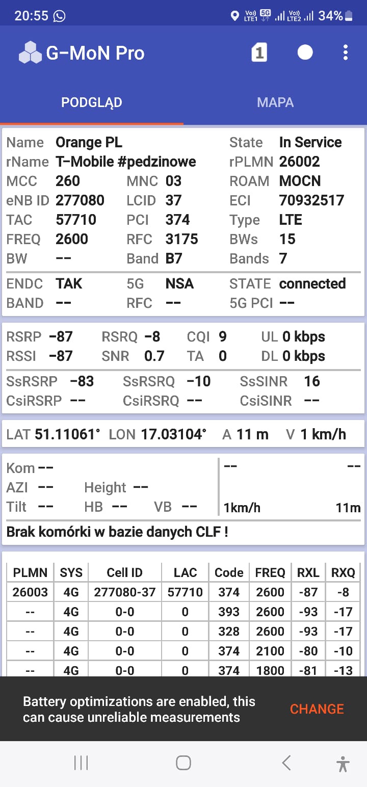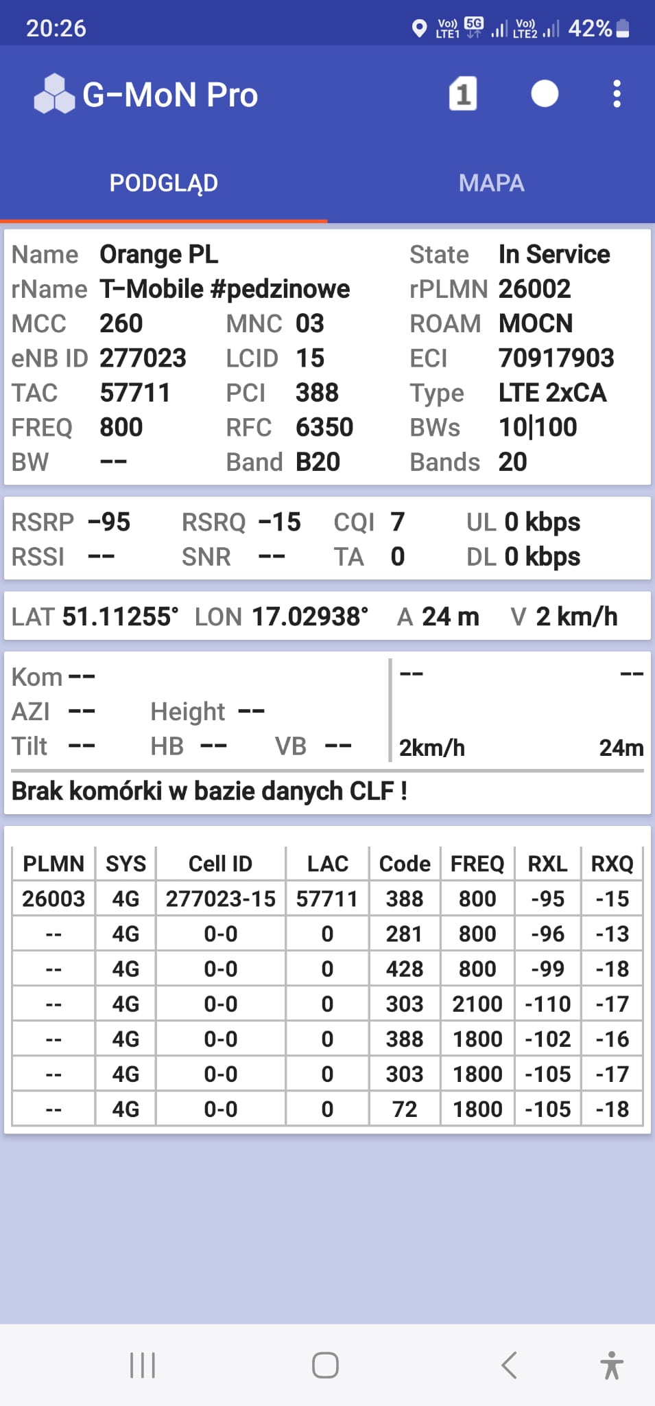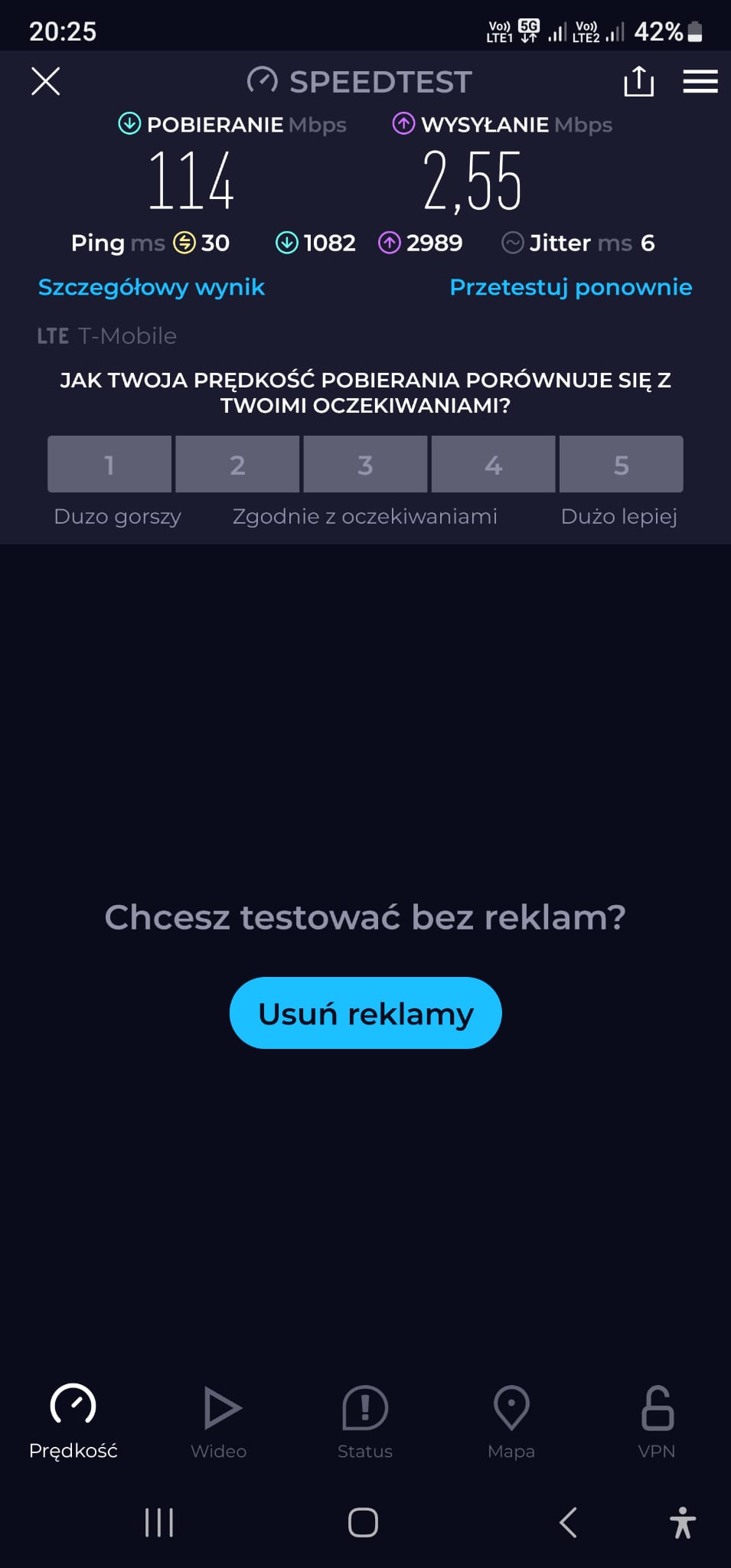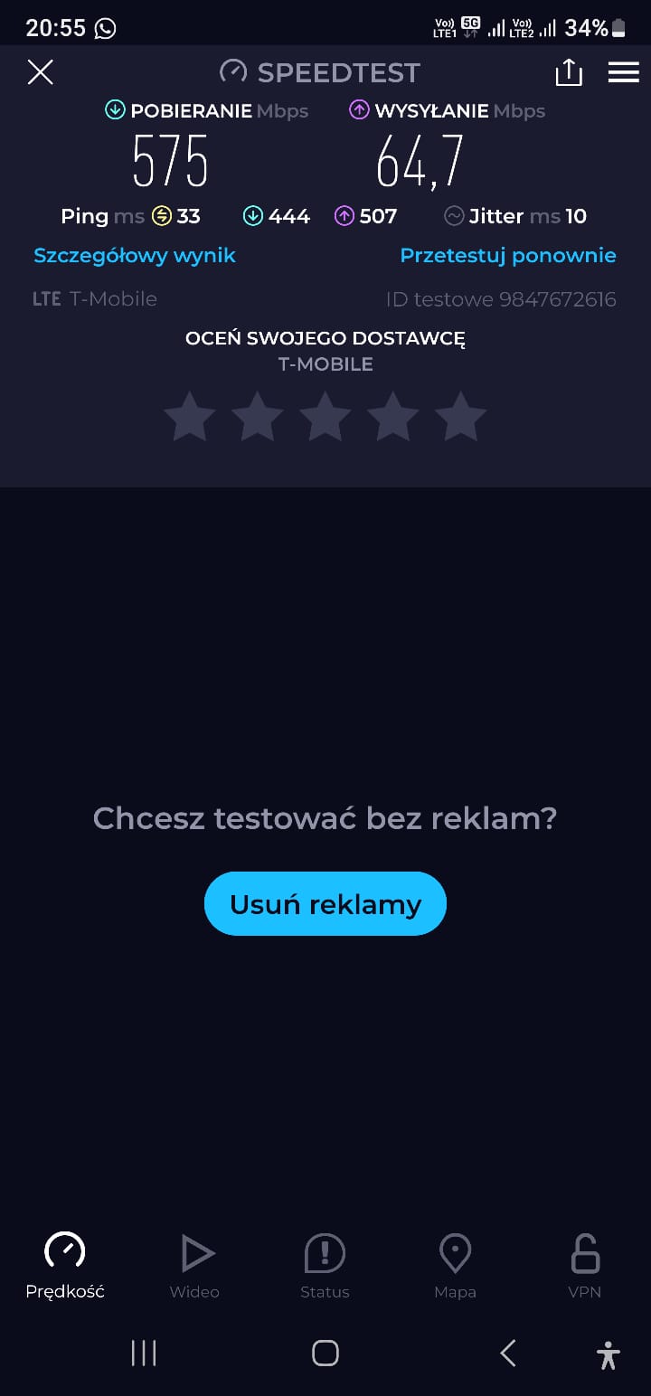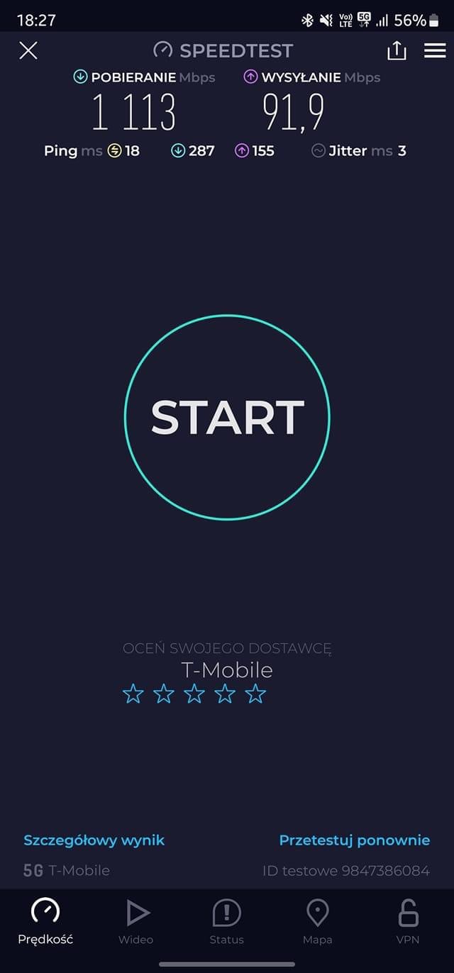 Poniżej zrzut ekranu z testu w T-Mobile z Zielonej Góry: