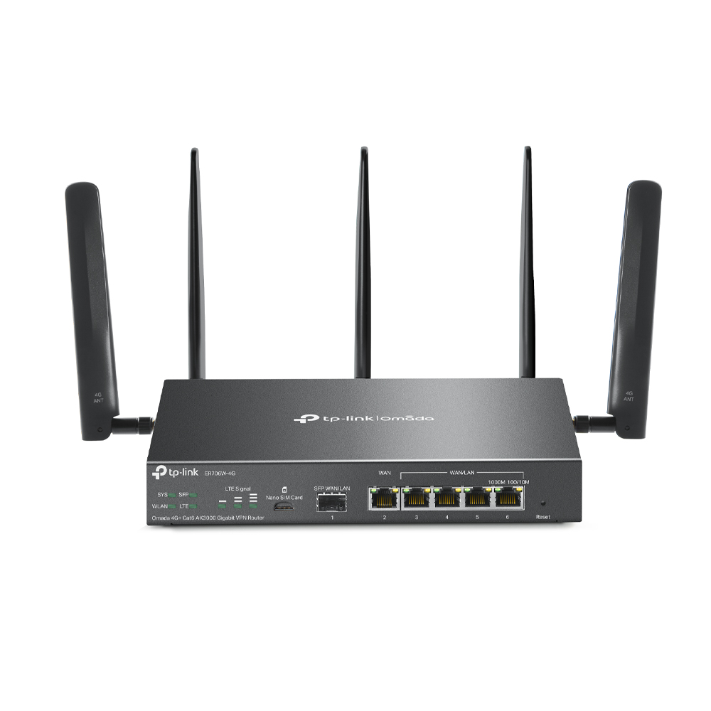 Kolejne nowości od TP-Link: pierwszy router z serii Omada z wbudowanym modemem LTE. TP-Link wprowadza do oferty pierwszy router z serii Omada z wbudowanym modemem LTE ER706W-4G. Kolejną nowością jest sufitowy punkt dostępowy WiFi 6 – EAP673. Urządzenia TP-Link z linii Omada konstruowane są z myślą o zastosowaniach w środowiskach wymagających, takich jak biura, hotele, placówki edukacyjne, magazyny czy hale produkcyjne. ER706W-4G to router klasy biznesowej z wbudowanym slotem na kartę nano SIM. Modem LTE Cat6 pozwala uzyskać dostęp do Internetu 4G+ LTE o prędkości do 300 Mb/s. Daje to także możliwość zapewnienia backupu sieci w przypadku awarii łącza głównego. Urządzenie oferuje łącznie 6 gigabitowych portów Ethernet – jeden port SFP WAN/LAN, jeden port WAN oraz cztery porty WAN/LAN, co w połączeniu z funkcją równoważenia pasm Multi-WAN, pozwala na pełne wykorzystanie wielu łącz szerokopasmowych. To idealne rozwiązanie dla użytkowników o wysokich wymaganiach, zapewniające niezawodność i elastyczność połączeń. Router ER706W-4G oferuje dwupasmowe WiFi w standardzie AX3000, zapewniając prędkości do 2402 Mb/s w paśmie 5 GHz oraz do 574 Mb/s w paśmie 2,4 GHz.