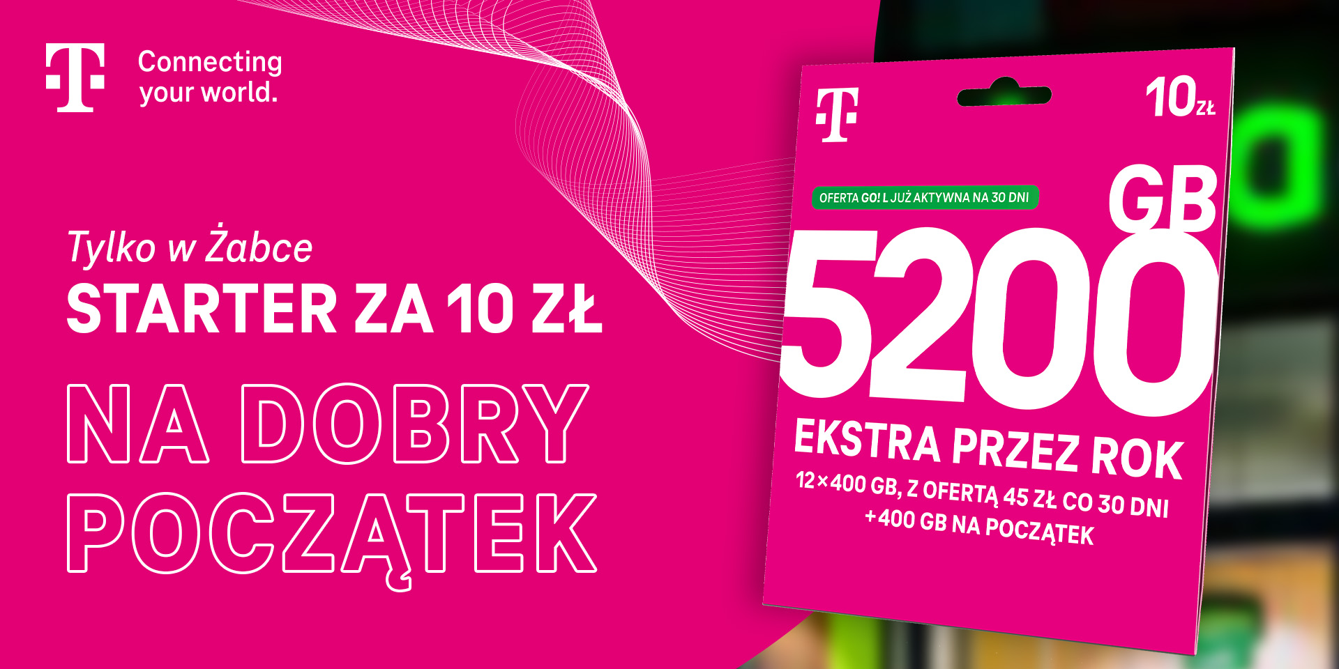 Dla tych, którzy poczuli już wiosnę i dla tych, którzy dopiero jej poszukują. Wprowadzamy nową odsłonę oferty, która rozpromieni absolutnie każdego! Już teraz w sieci sklepów Żabka oferujemy nowe startery T-Mobile na kartę za 10 zł. Osoby, które je zakupią, otrzymają aktywny pakiet GO! L na 30 dni, 200 GB na start, możliwość zgarnięcia kolejnych 200 GB za wyrażenie zgód marketingowych oraz uruchomienia oferty „Rok Internetu”, z którą można zyskać nawet 400 GB miesięcznie. Zbliżająca się wiosna sprawia, że budzi się w nas chęć do działania, a z dodatkowymi 5200 GB (z ofertą 45 zł co 30 dni 12 x 400 GB plus 400 GB na początek) klientom T-Mobile z pewnością nie zabraknie możliwości. W sieci sklepów Żabka czekają na nich bowiem startery z preaktywowaną ofertą GO! L z nielimitowanymi rozmowami, SMS-ami i MMS-ami, a także 60 GB (30 GB w ramach oferty i 30 GB po doładowaniu) na 30 dni. Do tego użytkownicy otrzymują 200 GB ekstra na start na 30 dni, do których dołożyć mogą kolejne 200 GB na 30 dni, jeśli tylko wyrażą zgody marketingowe. Co więcej, oferta GO! L umożliwia im również korzystanie z szybkiej sieci 5G Bardziej. Wszystko to w cenie 10 zł. przez pierwsze 30 dni!