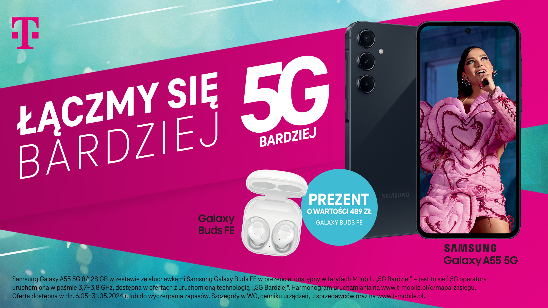 Na krótsze i dłuższe wycieczki albo na prezent – nowy smartfon sprawdzi się w każdej sytuacji! Wystartowała promocja w T-Mobile, która umożliwi klientom zakup smartfona Motorola Moto G54 5G Power Edition nawet 300 zł taniej. Dodatkowo, klienci, którzy zdecydują się na zakup smartfona Samsung Galaxy A55 5G, w prezencie otrzymają słuchawki Galaxy Buds FE. Promocje potrwają do końca maja i są dostępna dla osób, które zdecydują się na abonament „L Nielimitowana” lub „M Nielimitowana”. Wiosenne wypady za miasto, odległe podróże czy uroczystości rodzinne – wszędzie tam, gdzie jesteśmy, przydaje się także dobry aparat, mocna bateria i błyskawiczny internet. Dla wszystkich osób, które chciałyby korzystać z najnowocześniejszych urządzeń, mamy wiec nowe, atrakcyjne promocje. Wystarczy wybrać ofertę „M Nielimitowana” lub „L Nielimitowana” w T-Mobile z dostępem do ultraszybkiej sieci 5G i zdecydować się na jeden z dwóch promocyjnych modeli smartfonów: Samsung Galaxy A55 5G lub Motorola Moto G54 5G Power Edition.
