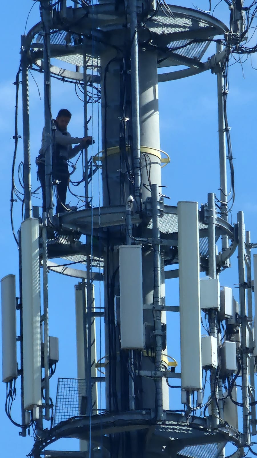 We wcześniejszych wpisach informowaliśmy o rozpoczętym procesie modernizacji stacji sieci Orange w Jeleniej Górze, w kierunku oferowania przez nie 5G n78. Dziś rozpoczęła się kolejna modernizacja. Tym razem, to lokalizacja w dzielnicy Sobieszów, przy ul. Romera. Od jakiegoś czasu w Rejestrze urządzeń wpisano w tej lokalizacji stację Play, ale dotąd nic nie wskazuje na to, aby cokolwiek w tej materii się rozpoczęło. Podobnie rzecz się ma przy ul. Wolności 299 (dzielnica Cieplice) oraz – jak pisaliśmy w informacji wcześniej – w śródmieściu, przy ul. 1-go Maja 27, gdzie swoje stacje mają operatorzy globalni (Orange) oraz Plus. Wracając do stacji przy ul. Romera 7, na maszcie, na niższej galerii goszczą instalacje GSM/UMTS900/LTE/5G sieci Plus. Wyższa galeria, to infrastruktura operatorów globalnych.
