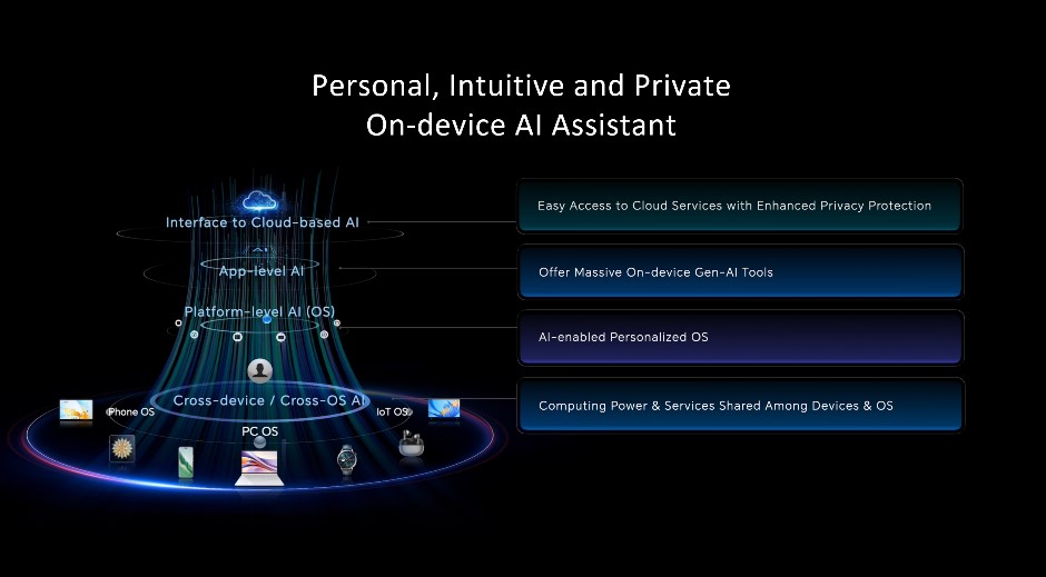 Podczas prezentacji HONOR przedstawił swoją czterowarstwową architekturę AI i zademonstrował integrację sztucznej inteligencji z systemem MagicOS. W warstwie bazowej, AI pomiędzy urządzeniami i systemami stanowi podstawę otwartego ekosystemu, co pozwala na współdzielenie mocy obliczeniowej i usług. Kolejnym elementem jest warstwa sztucznej inteligencji na poziomie platformy, która umożliwia spersonalizowanie systemu operacyjnego i zapewnia interakcję pomiędzy człowiekiem a komputerem opartą na intencjach. Trzecia warstwa sztucznej inteligencji na poziomie aplikacji pozwala na wprowadzenia wielu innowacyjnych programów AI, które wpłyną na doświadczenia użytkowników. Na samej górze znajduje się warstwa interfejsu, która zapewnia łatwy dostęp do usług w chmurze, jednocześnie mając na uwadze ochronę prywatności.