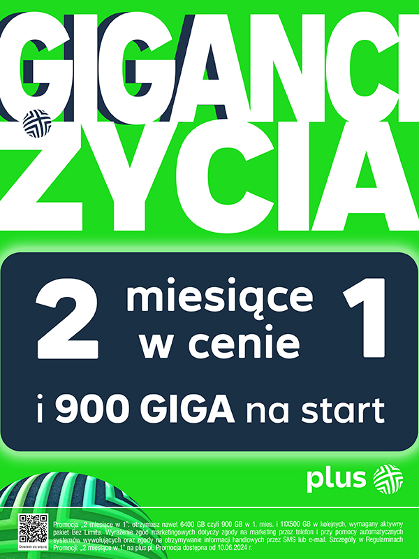 Plus na Kartę rozpoczyna prawdziwą rewolucję. Od dzisiaj dostępna jest nowa promocja, dzięki której użytkownicy będą mogli do woli czerpać z nieograniczonych możliwości internetu. Wszyscy klienci mogą zyskać nawet 6400 GB, które nie przepadają. Natomiast osoby, które kupią nowy starter otrzymają 2 miesiące w cenie 1. Plus na Kartę stawia na GIGAntów Życia, czyli osoby, które chcą maksymalnie wykorzystać nieograniczone możliwości internetu. Nowa oferta Plusa na Kartę sprawia, że zwykłe, codzienne sytuacje, jak czekanie w sklepowej kolejce, gotowanie czy prasowanie zamieniają się w przyjemny i wartościowy czas. Wszystko za sprawą ogromnej paczki, nawet 6400 GB, które nie przepadają. Dodatkowo, osoby, które kupią nowy starter Plusa na Kartę dostaną 2 miesiące w cenie 1 na początek.