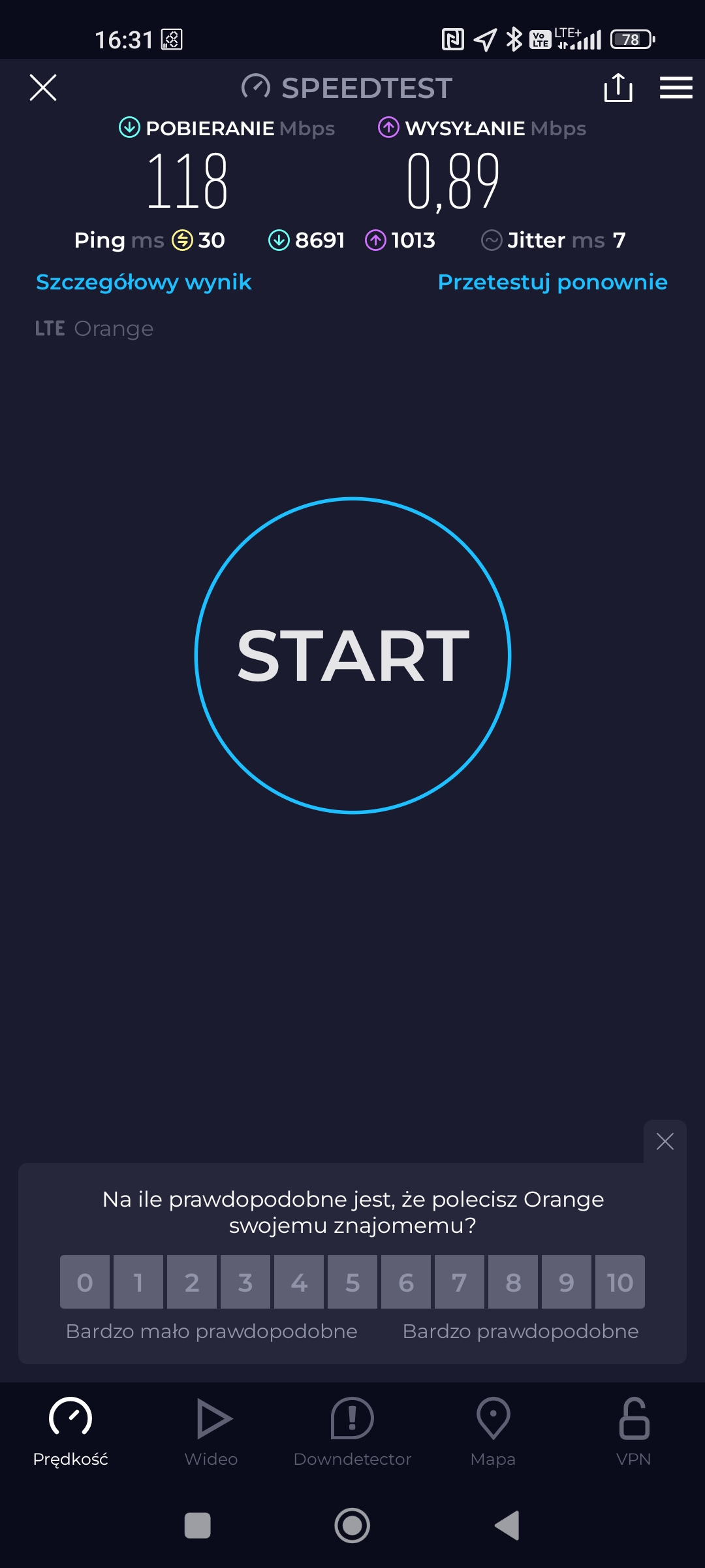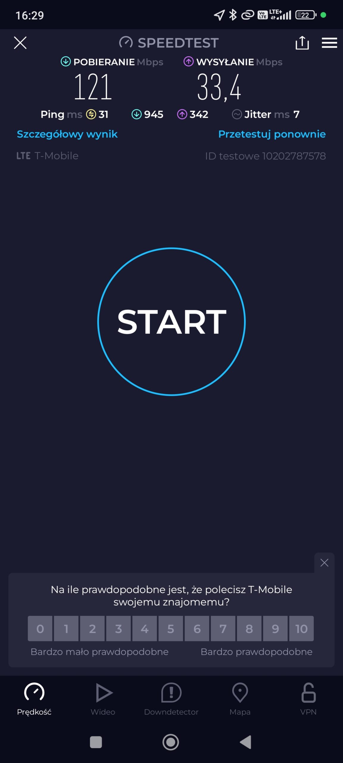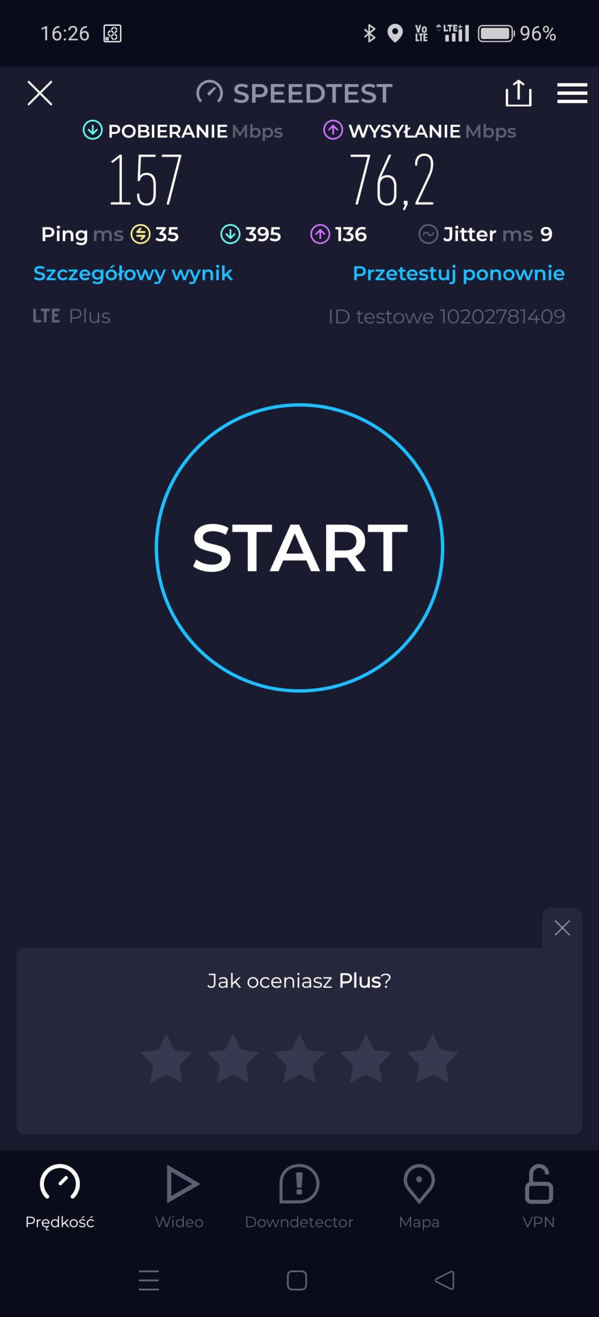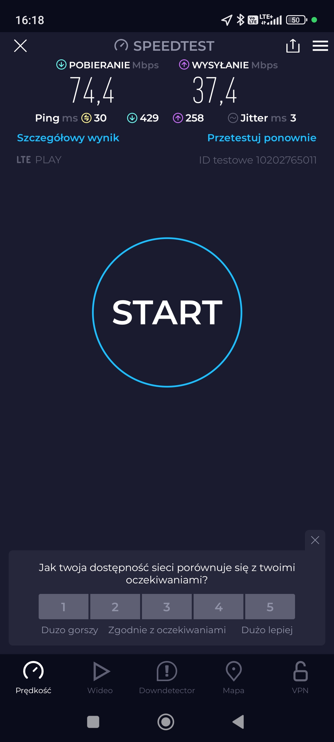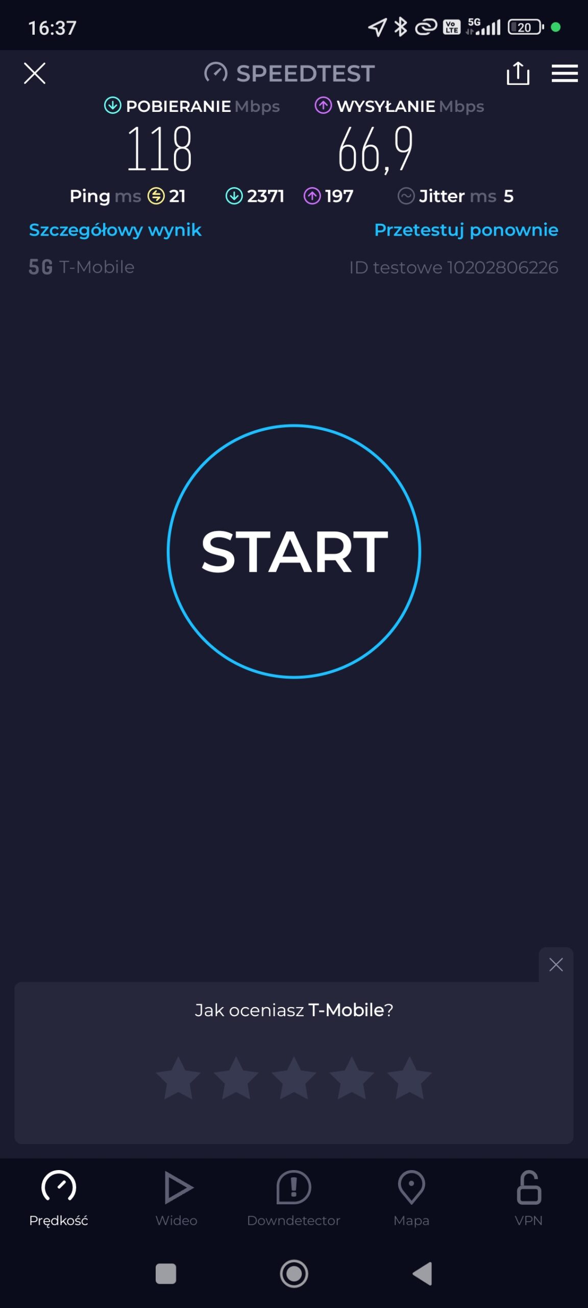 Jako że nadarzyła się okazja – wróciliśmy do centrum rozrywki Energylandia w Zatorze. Tym razem zrealizowaliśmy testy dla wszystkich operatorów, w technologiach, które były dostępne. Poza Play, który oferuje – póki co – klientom wyłącznie LTE, pozostali gracze pozwalają na skorzystanie zarówno z LTE, jak i 5G (Orange i T-Mobile 5G DSS band n1).