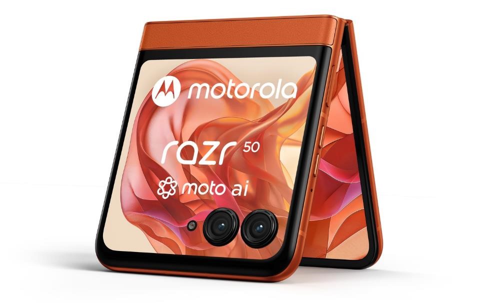 Motorola razr 50 wykorzystuje nowy procesor MediaTek Dimensity 7300X i posiada 8 GB pamięci RAM oraz 256 GB pamięci wewnętrznej ROM w standardzie UFS 2.2. Bateria ma pojemność 4200 mAh i ładuje się z mocą 30 W (lub 15 W bezprzewodowo). Podobnie jak w droższym modelu razr 50 ultra znajdziemy tu głośniki stereo oraz trzy mikrofony. Smartfon wspiera nowoczesny standard eSIM. Główny aparat może z powodzeniem zostać wykorzystany do robienia selfie. Składa się z modułu 50 Mpx (f/1.7) z optyczną stabilizacją obrazu (OIS) wspieranego przez ultraszerokokątny sensor 13 Mpx (f/2.2). Przedni aparat to oczko 32 Mpx (f/2.4). Od strony designu motorola razr 50 nie ustępuje droższemu modelowi razr 50 ultra. Smartfon wykończony jest wegańską skórą w trzech wersjach kolorystycznych: stalową (Koala Gray), jasnoszarą (Beach Sand) oraz pomarańczową (Spritz Orange). Konstrukcja jest równie solidna i niezawodna. Certyfikacja IPX8 [2] chroni urządzenie przez przypadkowym zalaniem, a także umożliwia jego umycie pod bieżącą wodą czy nawet zanurzenie. W zestawie sprzedażowym znajdziemy dedykowane etui, które pozwala przewiesić smartfon przez ramię lub zawiesić urządzenie na szyi. Motorola razr 50 dostępna jest z Androidem 14 wzbogaconym o nowoczesną i niezwykle lekką nakładkę Hello UX, która zapewnia wyjątkowo szeroki zakres personalizacji oraz intuicyjną obsługę. Smartfon daje użytkownikowi dostęp do licznych i wciąż rozszerzanych funkcji moto ai – generatywnej sztucznej inteligencji, która pozwala personalizować urządzenie i zwiększa jego fotograficzny potencjał.