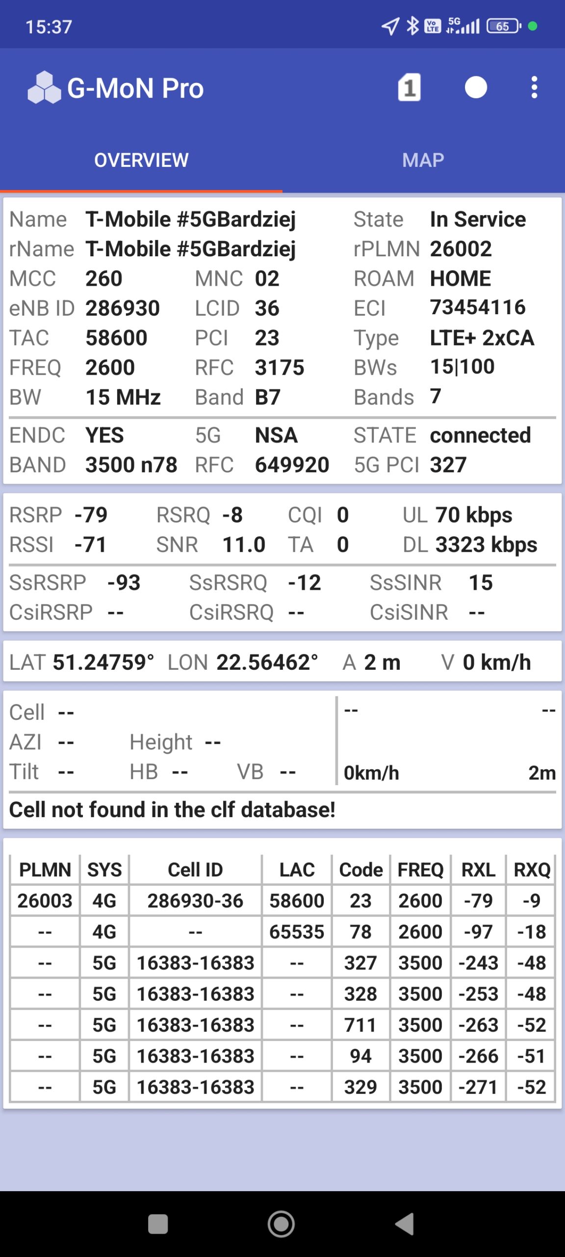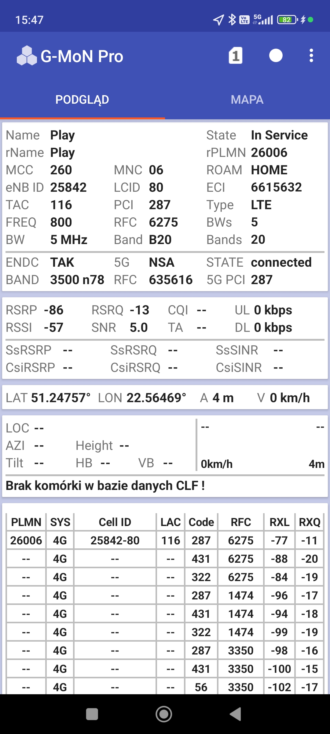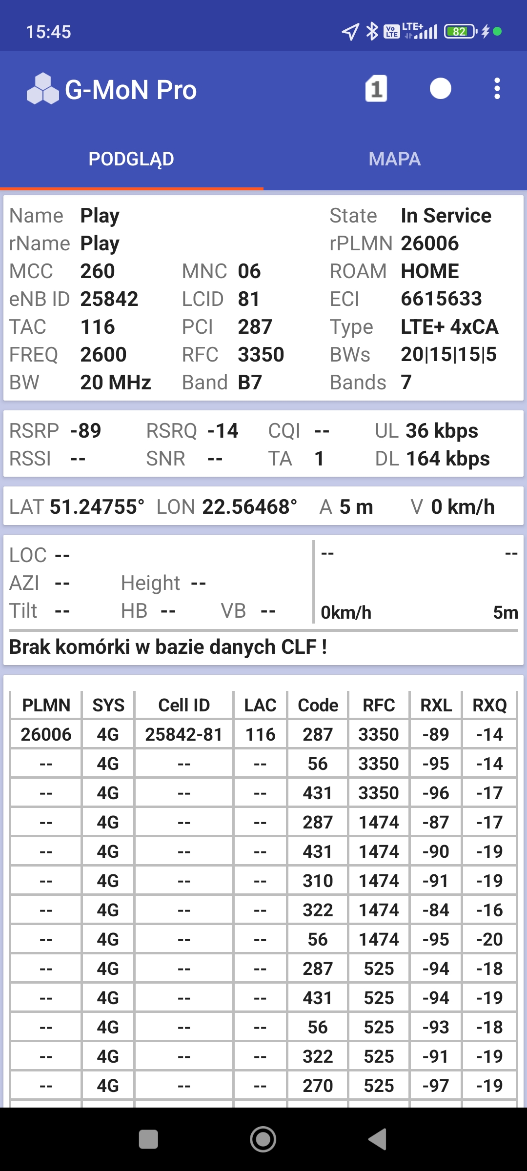Prezentujemy jakość transmisji danych operatorów sieci w Lublinie, na miejskim deptaku, wzdłuż ulicy Krakowskie Przedmieście. Trzej operatorzy oferują tu zarówno LTE, jak i 5G band n78. Jedynym operatorem, odstającym od tego schematu jest Plus, którego segmentu 5G nie ma.