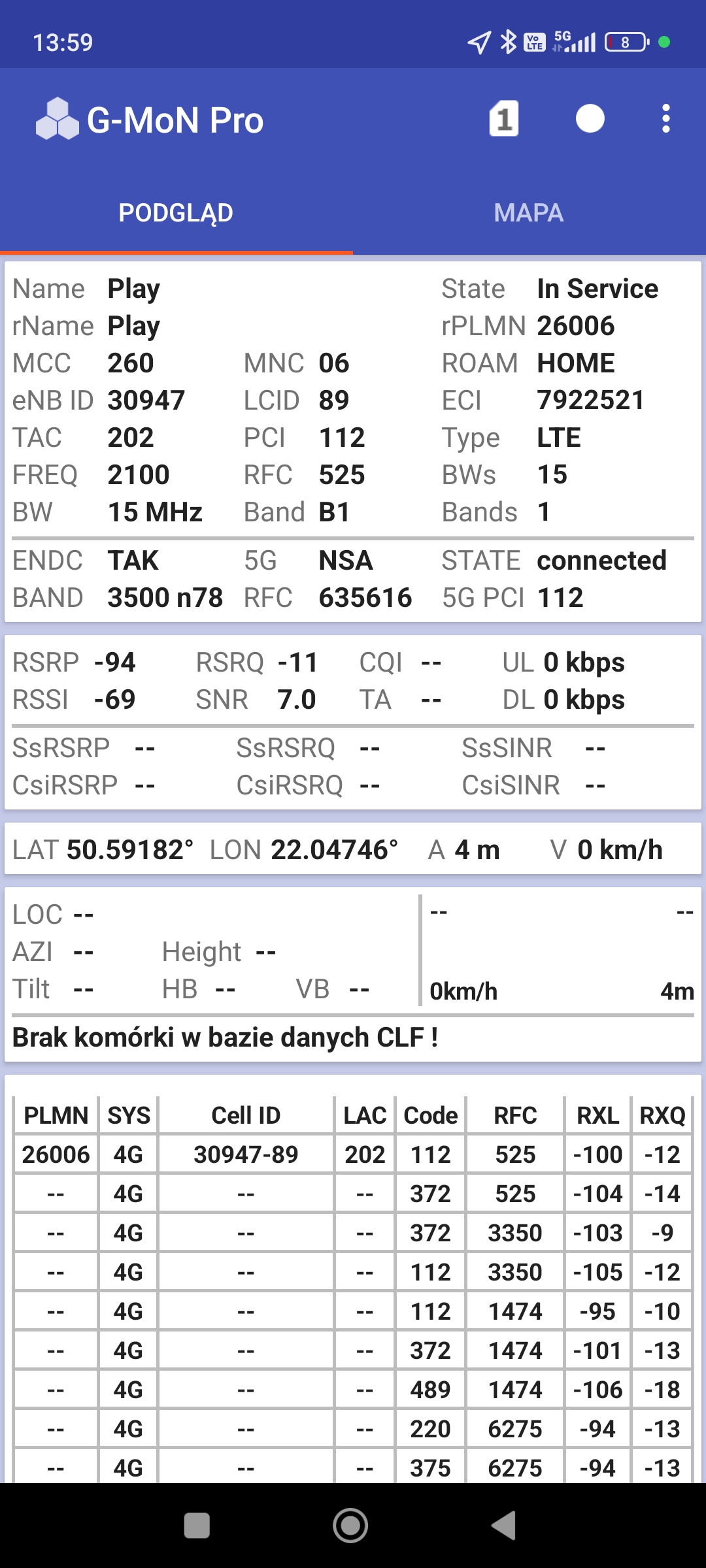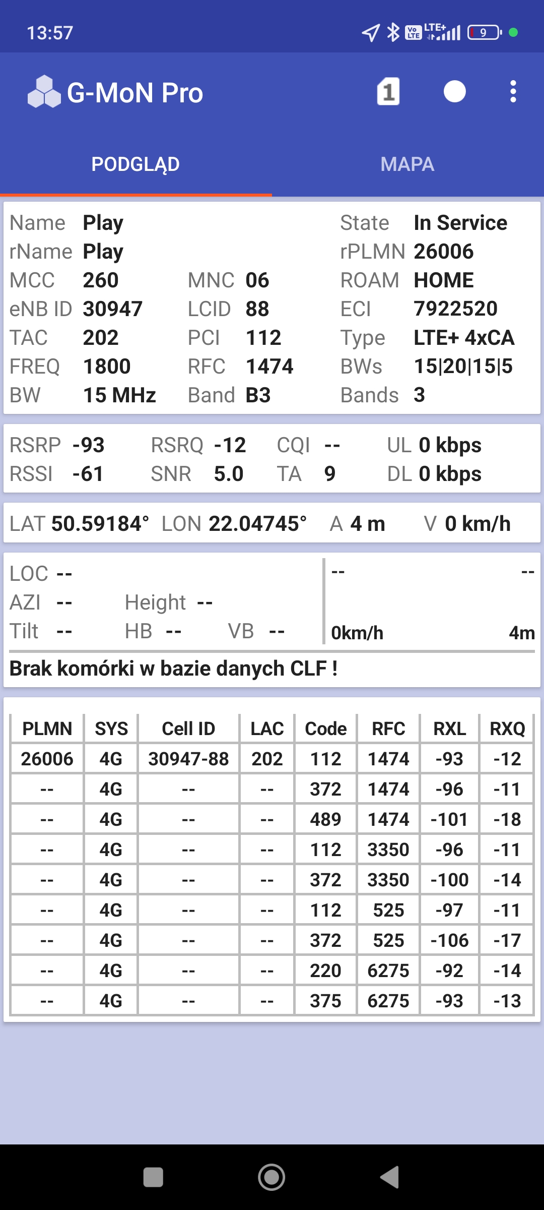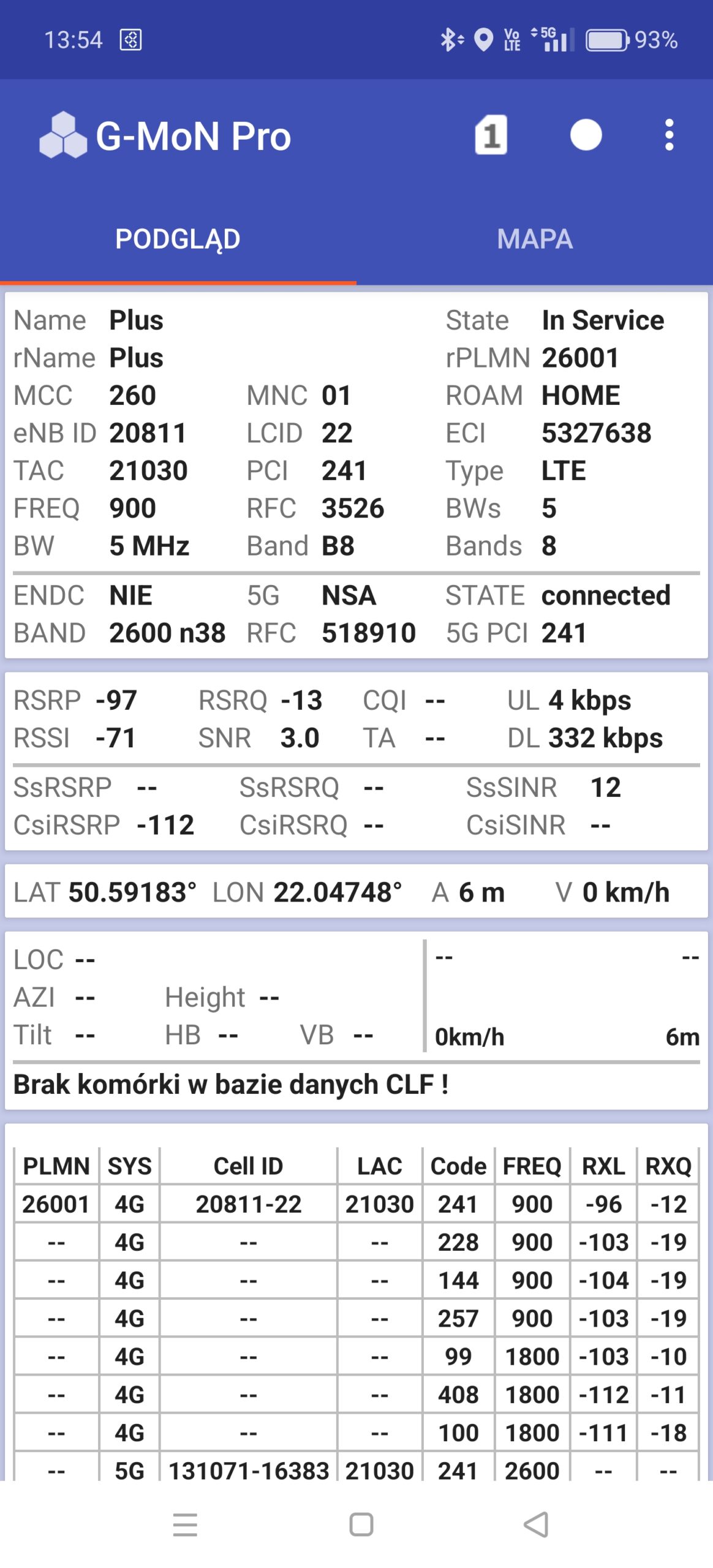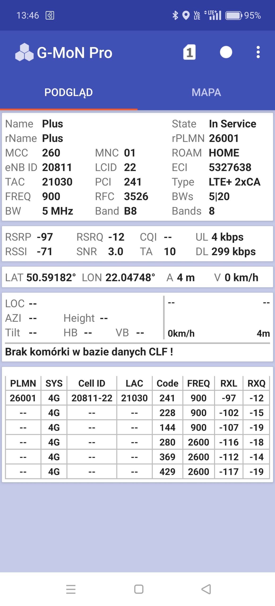 B. w sieci Plus, zarówno w LTE, jak i w 5G nie można było skorzystać z segmentu LTE1800 jako pasma priorytetowego. Pomimo dłuższego oczekiwania i pomimo prób przejścia do trybu offline i z powrotem. Terminal uparcie traktował jako pasmo priorytetowe LTE900