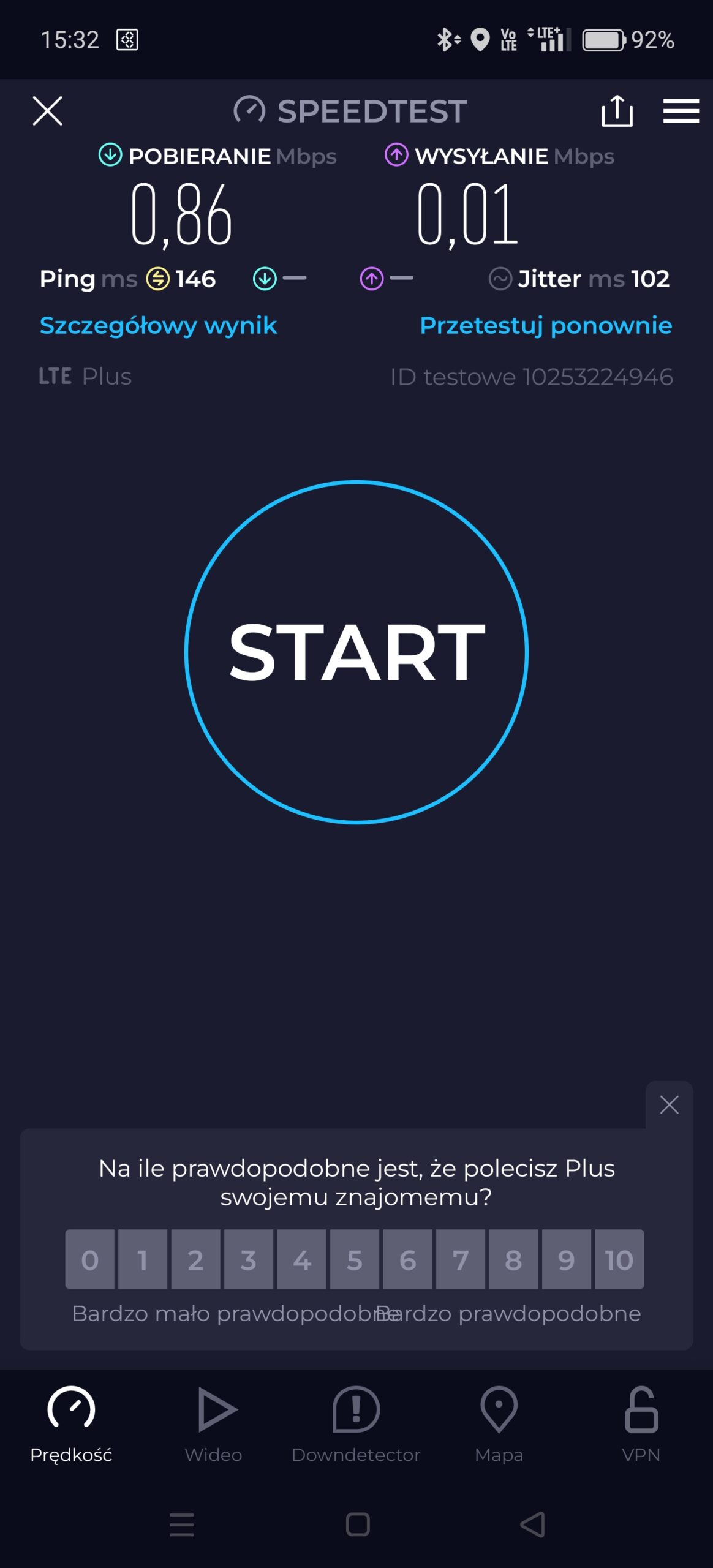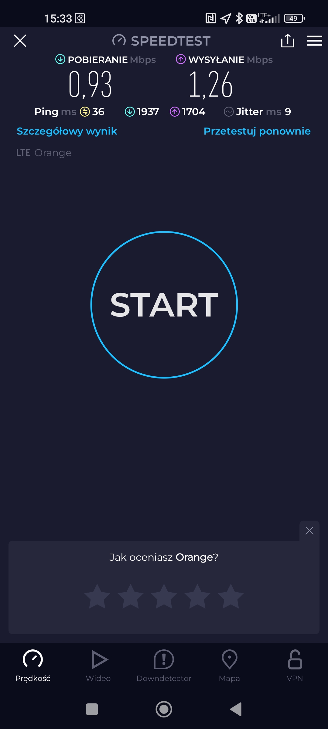 We wcześniejszej informacji prezentowaliśmy jakość dostępnego sygnału i transmisji danych w sieciach komórkowych w centrum miejscowości Okuninka, w województwie lubelskim. Bieżący wpis dedykujemy punktowi, sąsiadującemu z wejściem na plażę przy Jeziorze Białym. Jak widać, mimo relatywnie niewielkiej odległości od stacji bazowych operatorzy nie popisują się jakością usług. Podkreślmy – są to usługi na zewnątrz budynków. W Play zaś pomimo wielokrotnych prób nie udało się zrealizować testu.